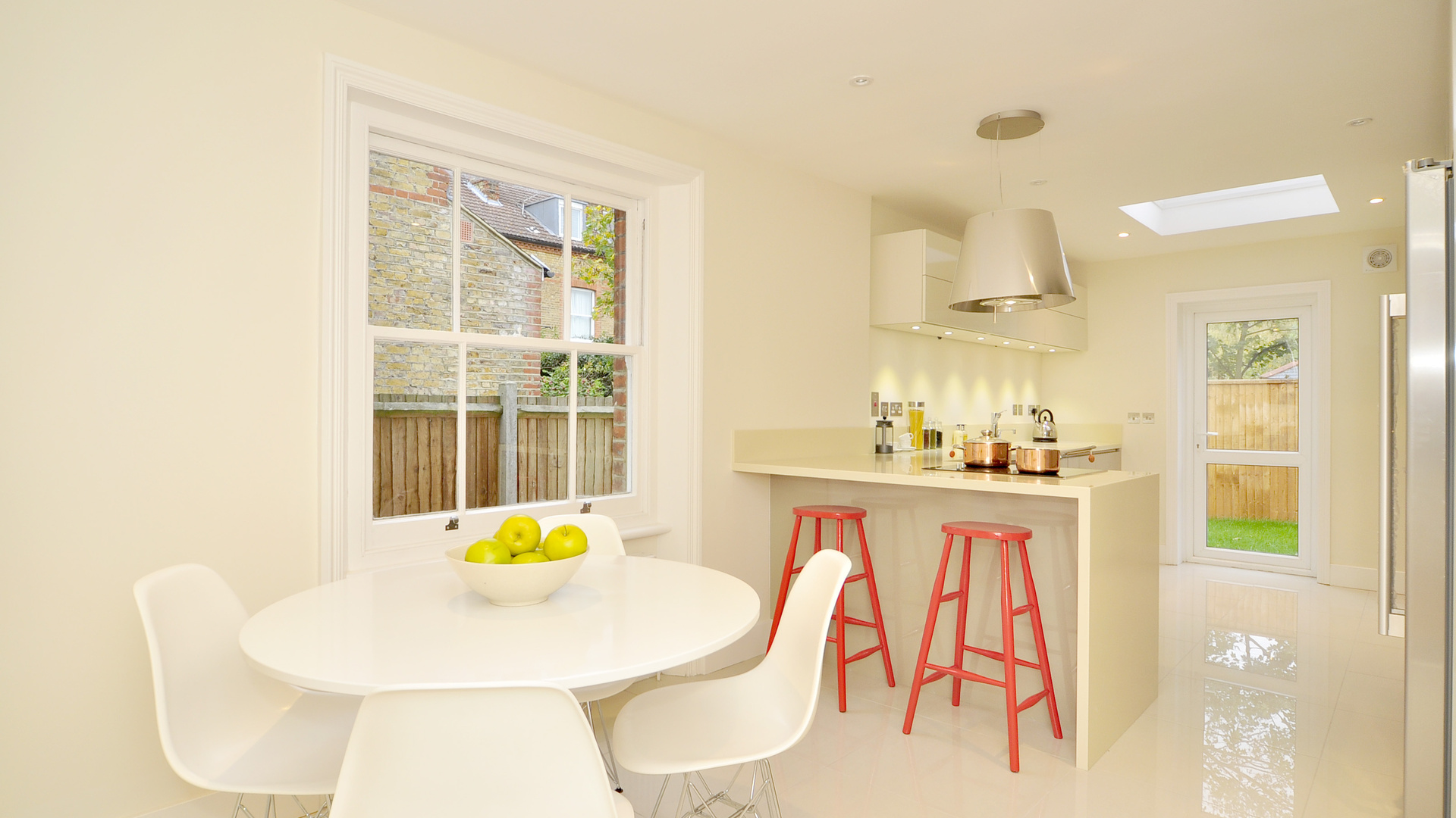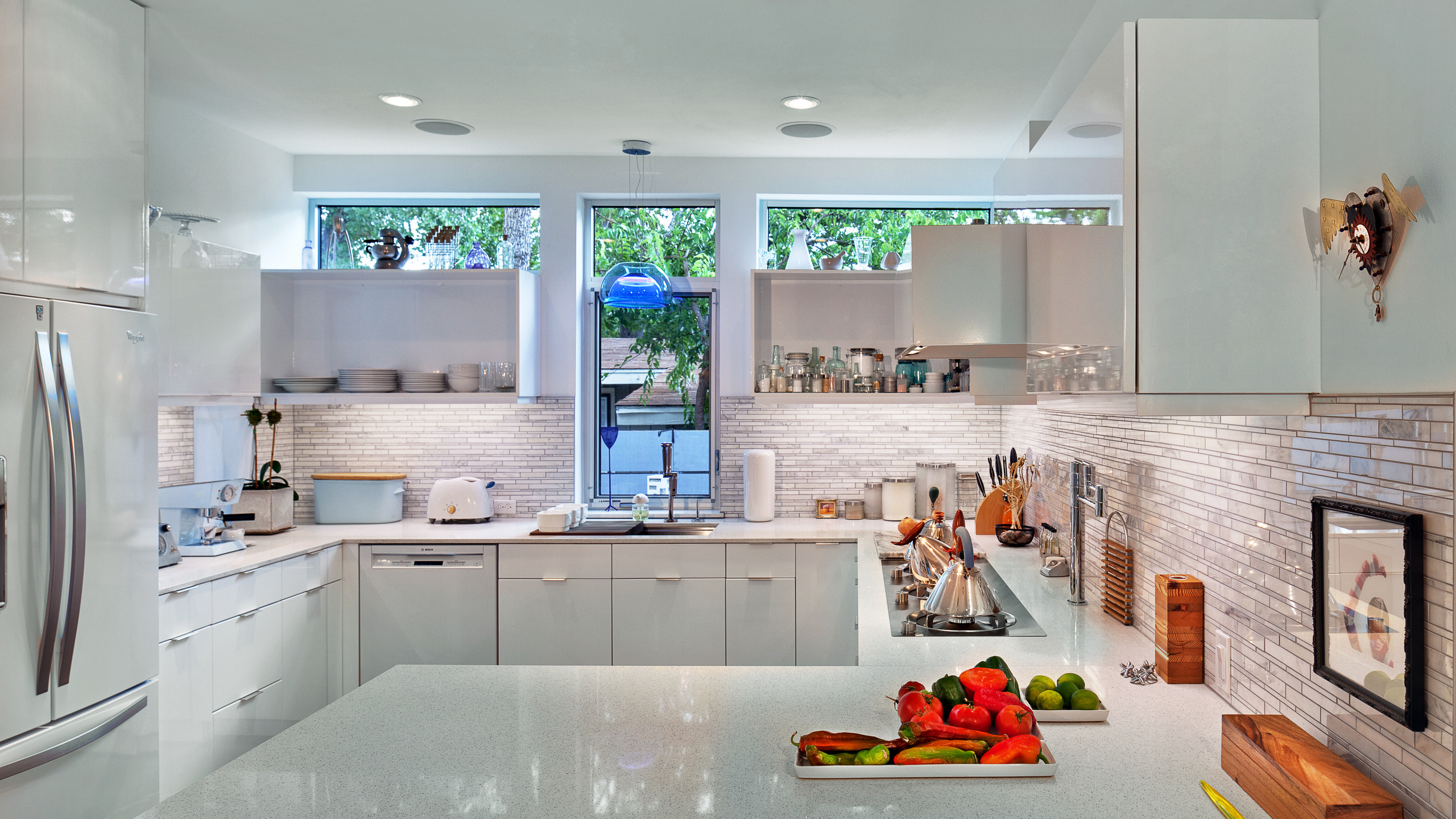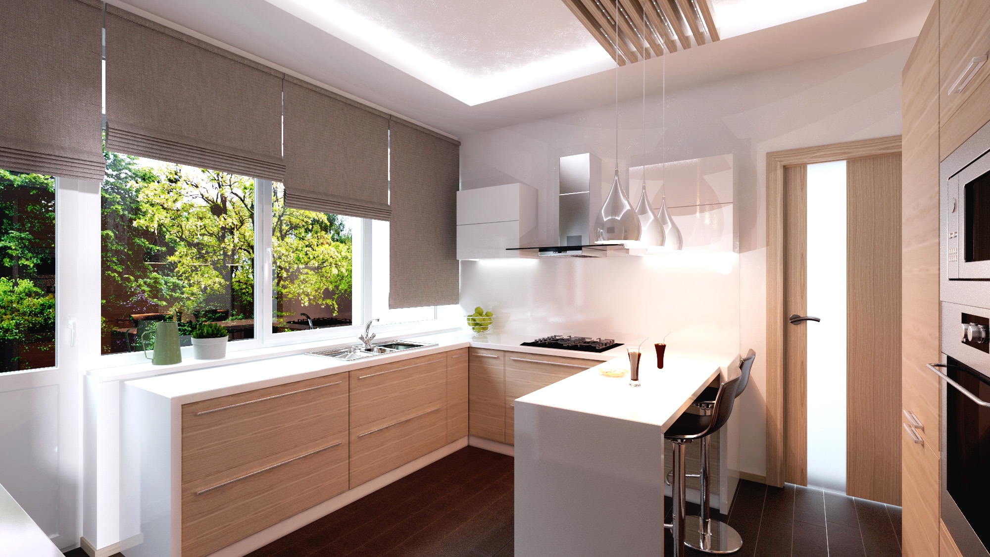 - look for a wallpaper with the goal of making the kitchen space visually larger and larger
