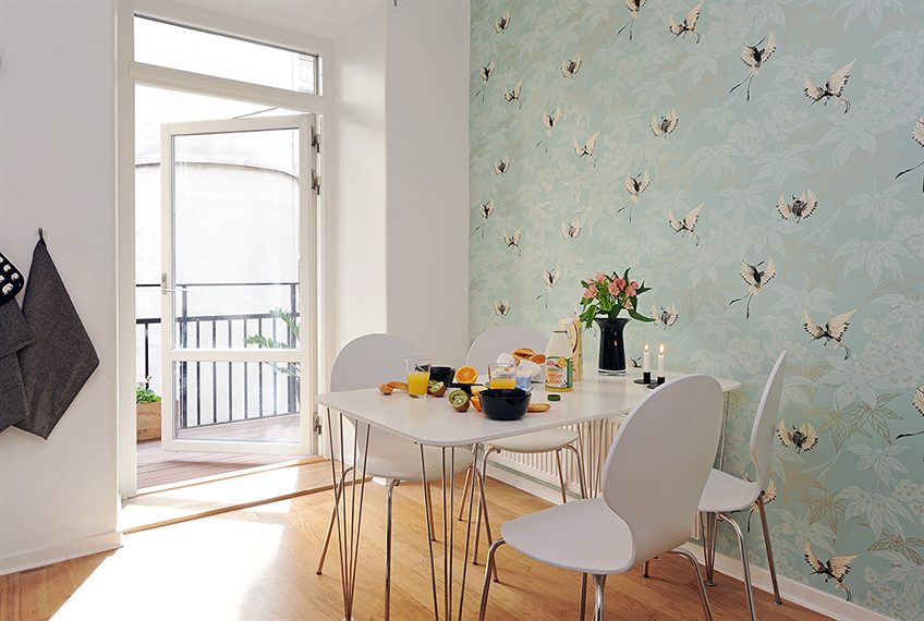 Paper wallpaper. This type of wallpaper can be considered the pioneers of the wallpaper market. They are environmentally friendly, as they are made of pure cellulose. Paper wallpapers are relatively inexpensive with a wide variety of colors and patterns. Such wallpapers are unlikely to be an ideal option for kitchen decoration, because they are short-lived and will not withstand wet cleaning.