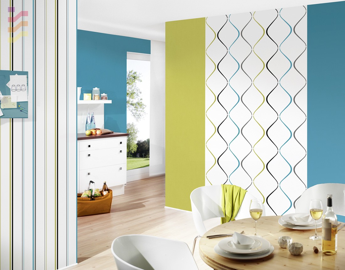 When combining wallpaper, the main options are vertical and horizontal zoning of space.