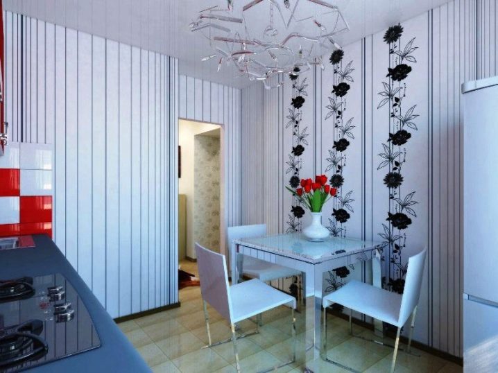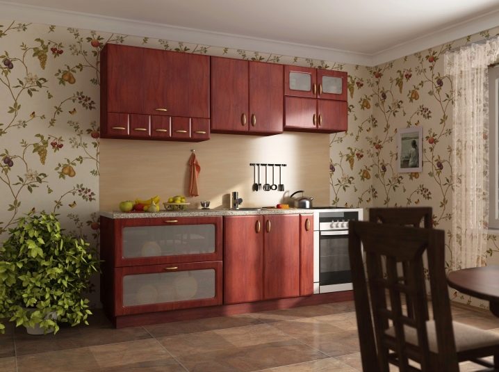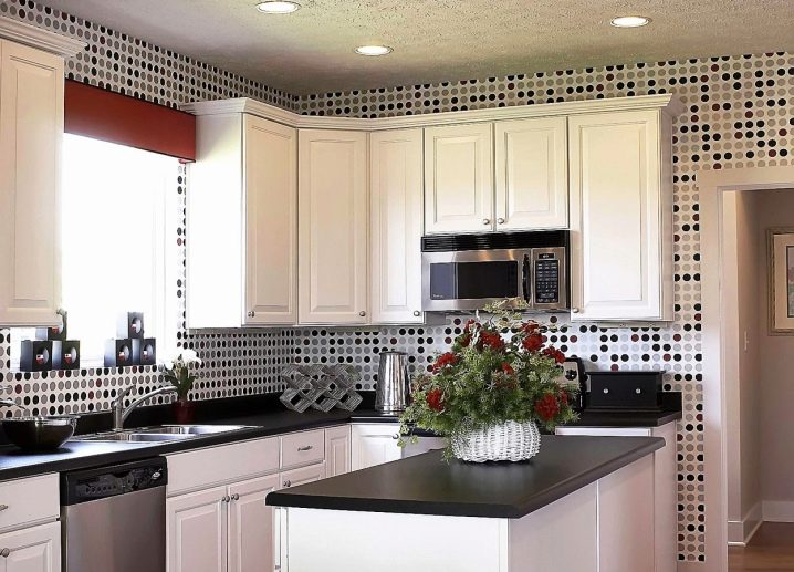 Do not forget to take into account the color of the kitchen set when glueing wallpaper, for example, matte textures are suitable for a glossy kitchen.