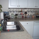 Photos in frames, hanging on hooks, or children's drawings will look very cute and original. Bright pot holders with appliqués over the stove or beautiful napkins laid out on the shelves will also bring harmony to the room.
