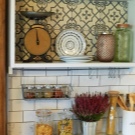 For example, on a well-lit wall on hanging shelves, you can put small pots with real or artificial flowers. Violets, cyclomenes, room gerberas, jasmine or flowering kalanchoe are perfect for this. Also in these pots you can grow greens yourself - lettuce, onion or dill. Just do not place live plants too close to the cooking surfaces and hoods.