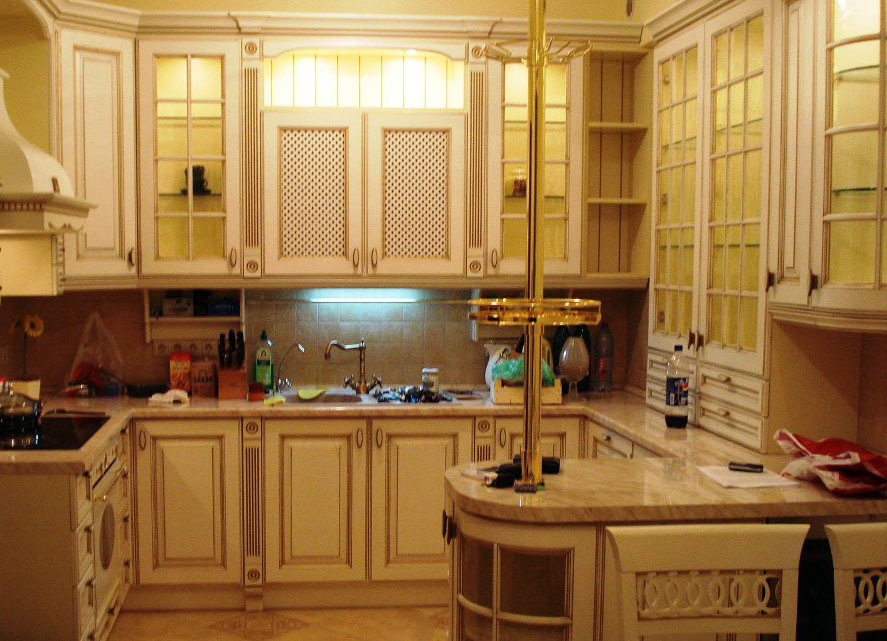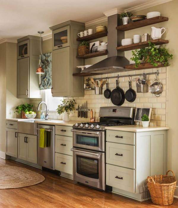The main problem faced by the hostess in arranging the kitchen in the apartment is a small area. On an area of 8 or even 5 square meters it is very difficult to place a stove, sink, refrigerator and a spacious kitchen with a large dining table at which the whole family will gather. In addition, it is simply inconvenient to store all the various kitchen utensils in cabinets and drawers - water can accumulate there, long handles can interfere, and the constant “playing Tetris” with drafting pots in pans takes a lot of time.