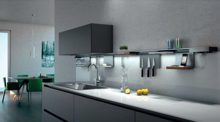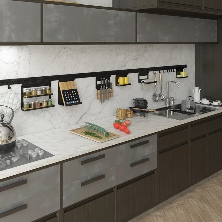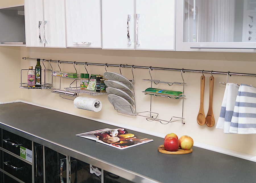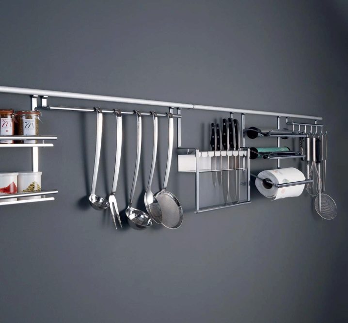To the aid of the modern owner came such devices as rails. They allow not only to maintain a constant order in the kitchen, but also are an excellent addition to the interior, combining functionality and stylish appearance.