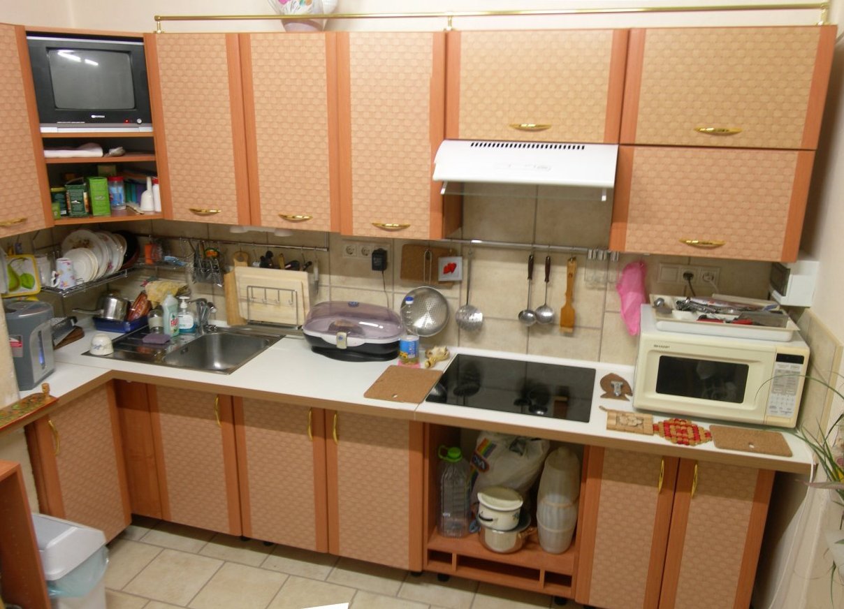 - Ability to place everything in walking distance. All kitchen appliances are always on the eyes, and for the right ladle or colander you just have to lend a hand.