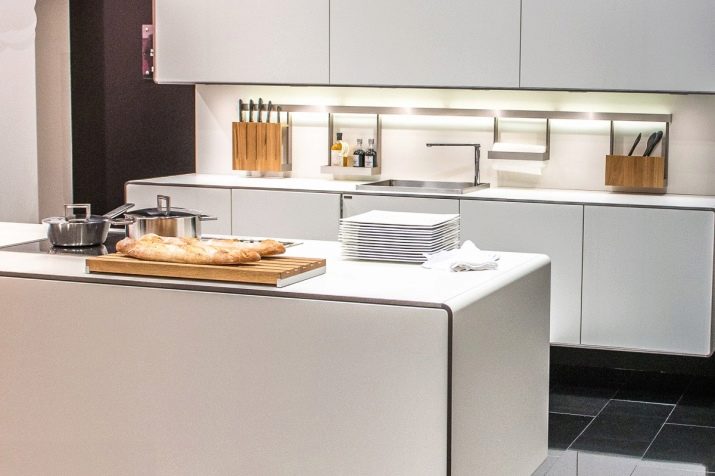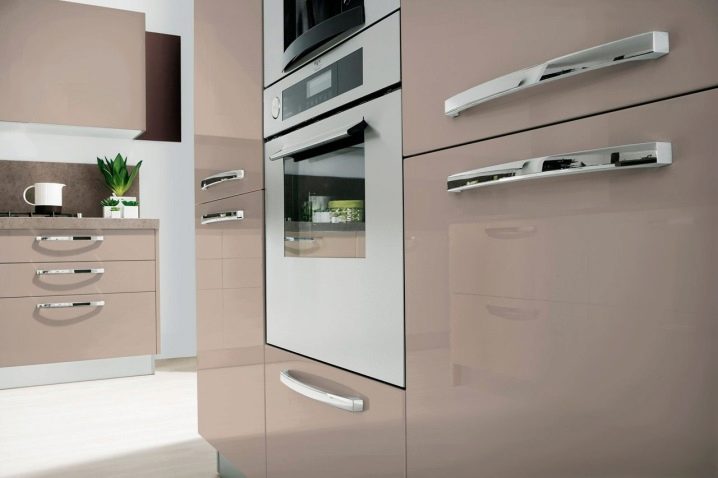 Handles-rails - a very convenient device, if the kitchen area is so small that it is impossible to use conventional mounting methods. They are installed on the doors of cabinets, wall cabinets or under countertops.