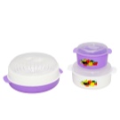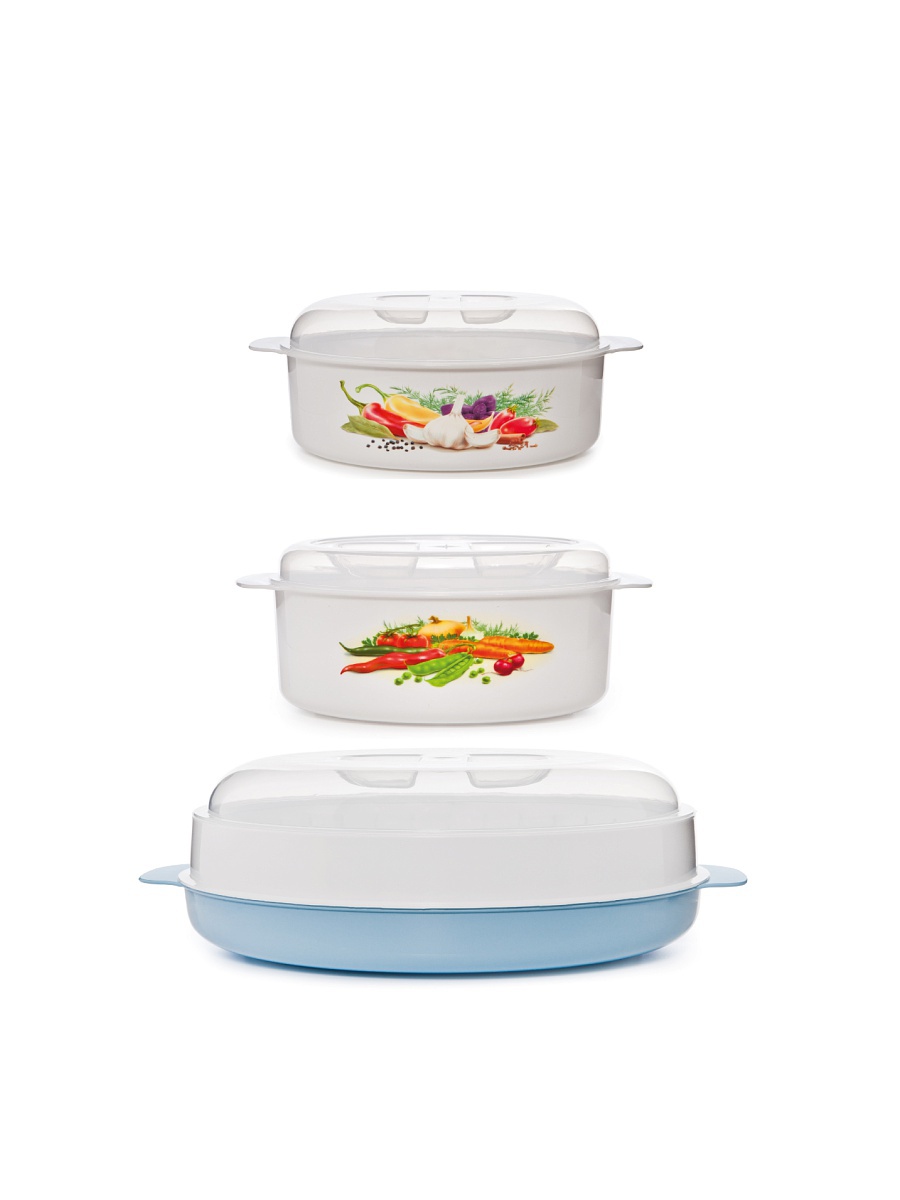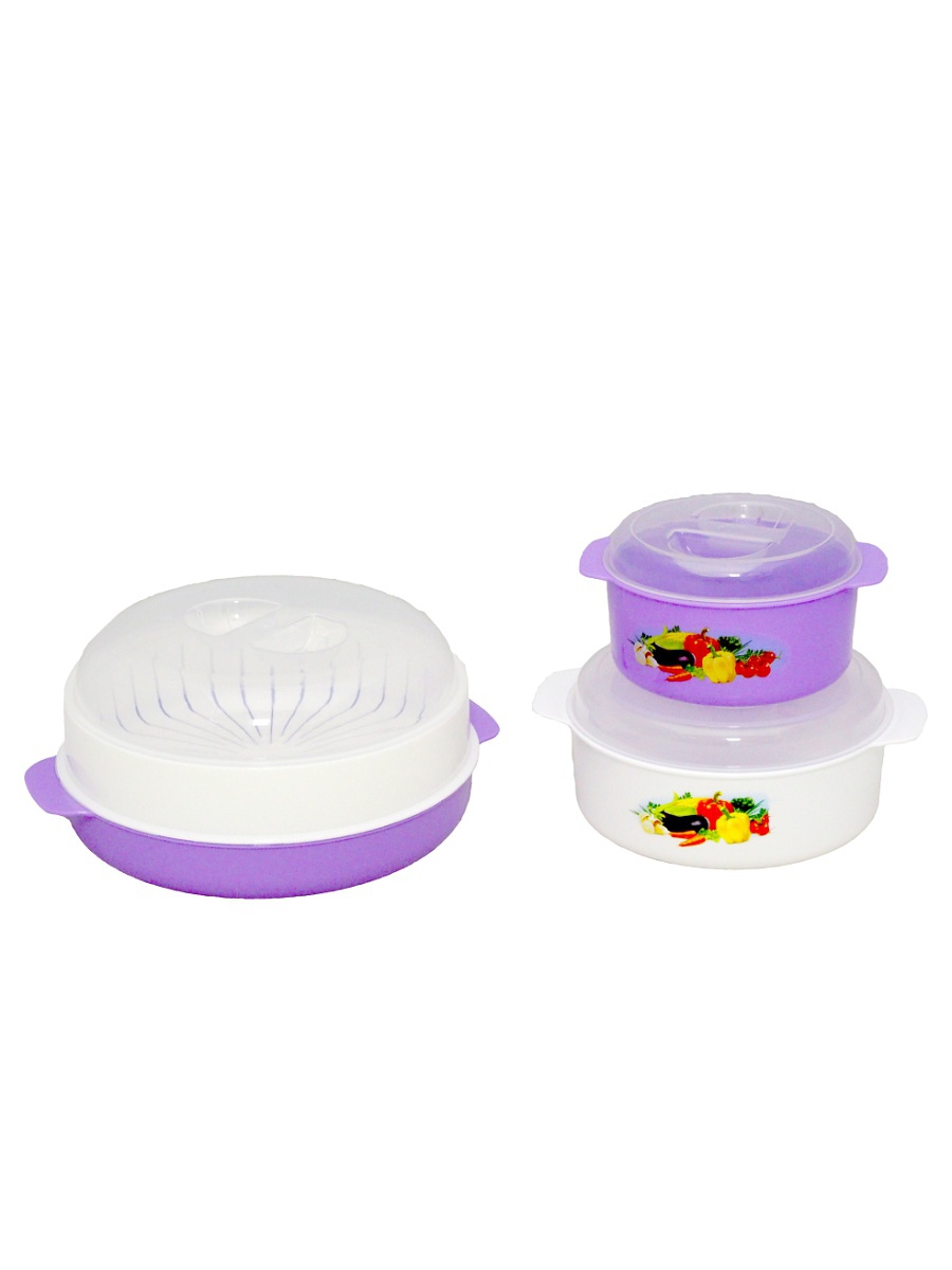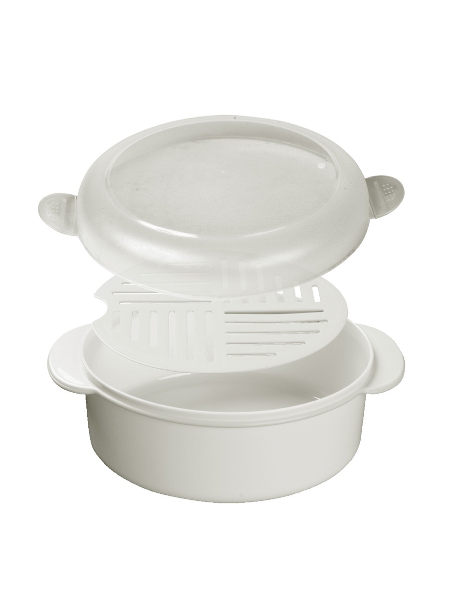 The built-in double boiler for the microwave oven is a plastic container, single-tier, two-level or two-component (consists of two main elements - a bowl for cooking and, a sieve), has a package for storage. The basic model offered by the domestic manufacturer Polimerbyt has three parts: a pallet, a grill and a cover. Steamers of a round, square and rectangular shape, different flowers are issued. It is best to work with a round - it is suitable for any microwave oven, but if you want to buy another shape, you can choose it, the difference in the final result does not make this moment. A microwave oven with the function of a double boiler will be the best purchase, and its owners will understand it after several uses.