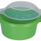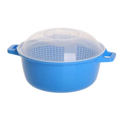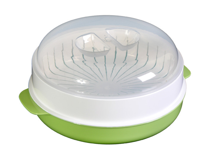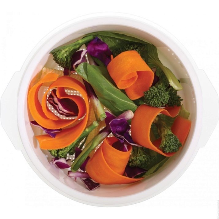 Steam cooking capacity for the microwave - an indispensable thing in the economy. Outwardly, it resembles an ordinary plastic pan, inside of which is placed a plastic sieve. Ingredients are laid out on it, then covered with a lid and sent to the microwave.