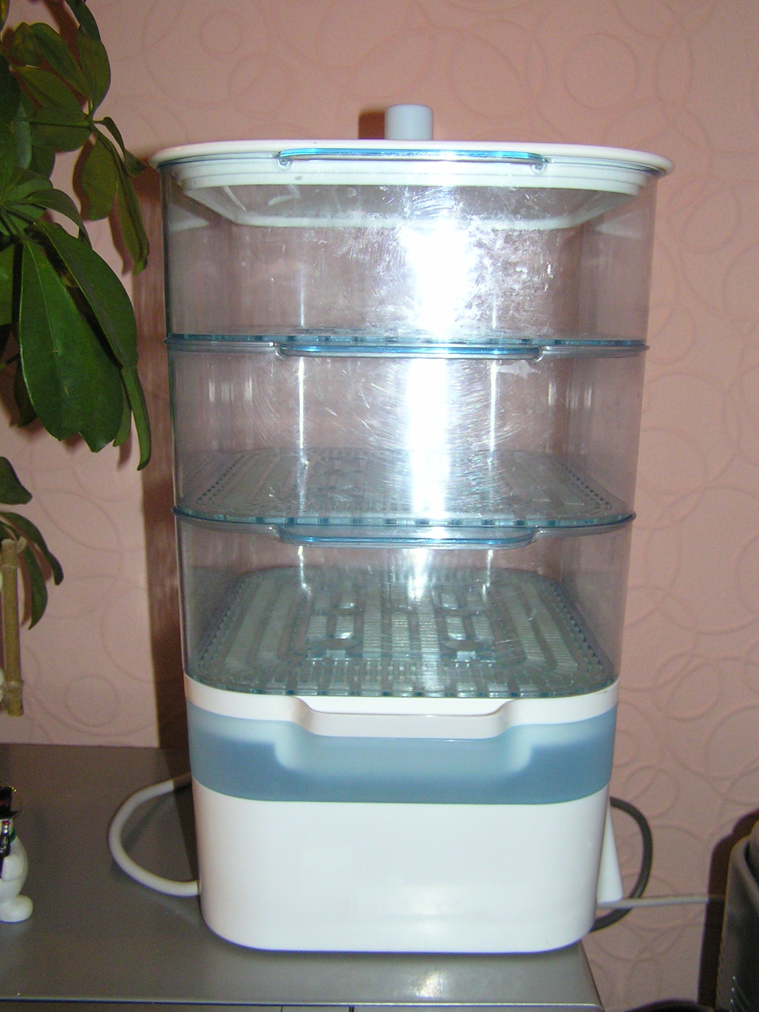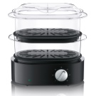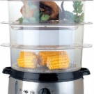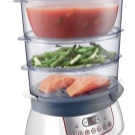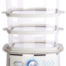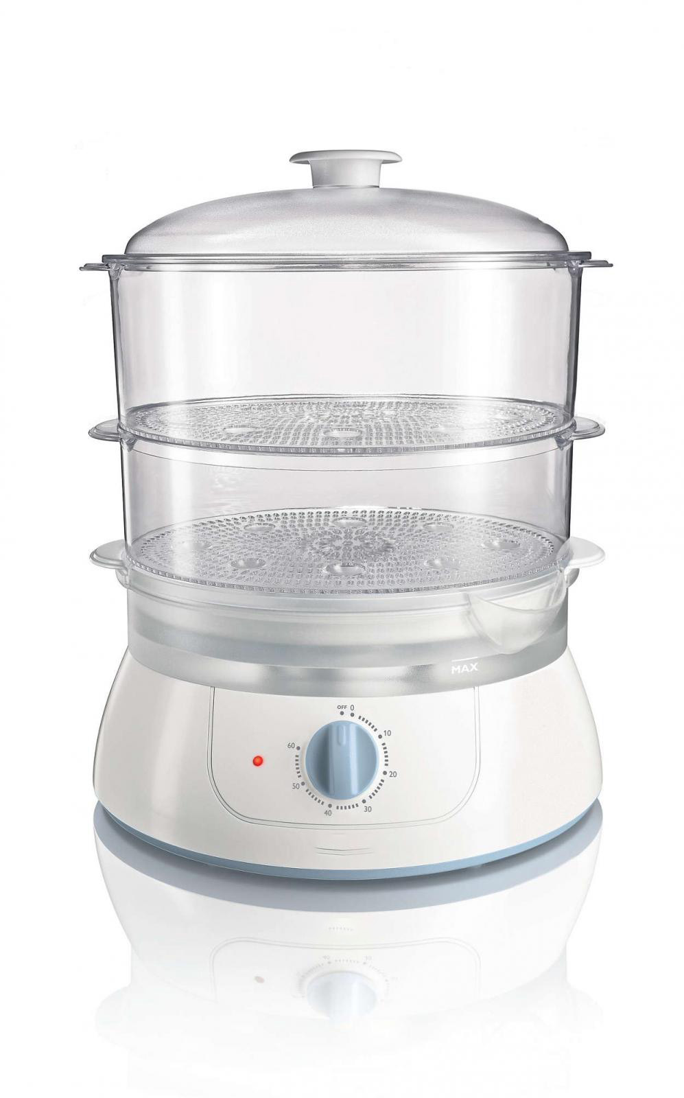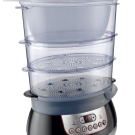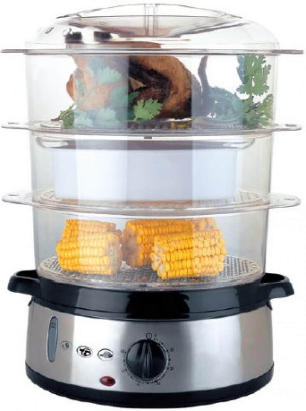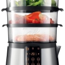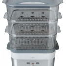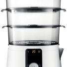 The power of the unit is 900 watts. It will be enough to cook products at an average speed. Unique steam distribution system - highlights this model. In the middle basket is a special cap. Included with the product is attached tube for the distribution of steam. You can remove the cap and insert the tube. In this way, products will be cooked evenly. This process can be used in the preparation of large quantities of products that do not fit in a single steam basket.