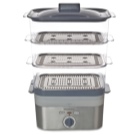 This model has three baskets of various sizes. Thus, you can immediately prepare different dishes and improve your culinary skills. This will help save time and nerves. Baskets have removable grids. Thus, the amount of cooking possible dishes increases. The basis of the design is stainless steel. The product will serve you for a long time with proper use.