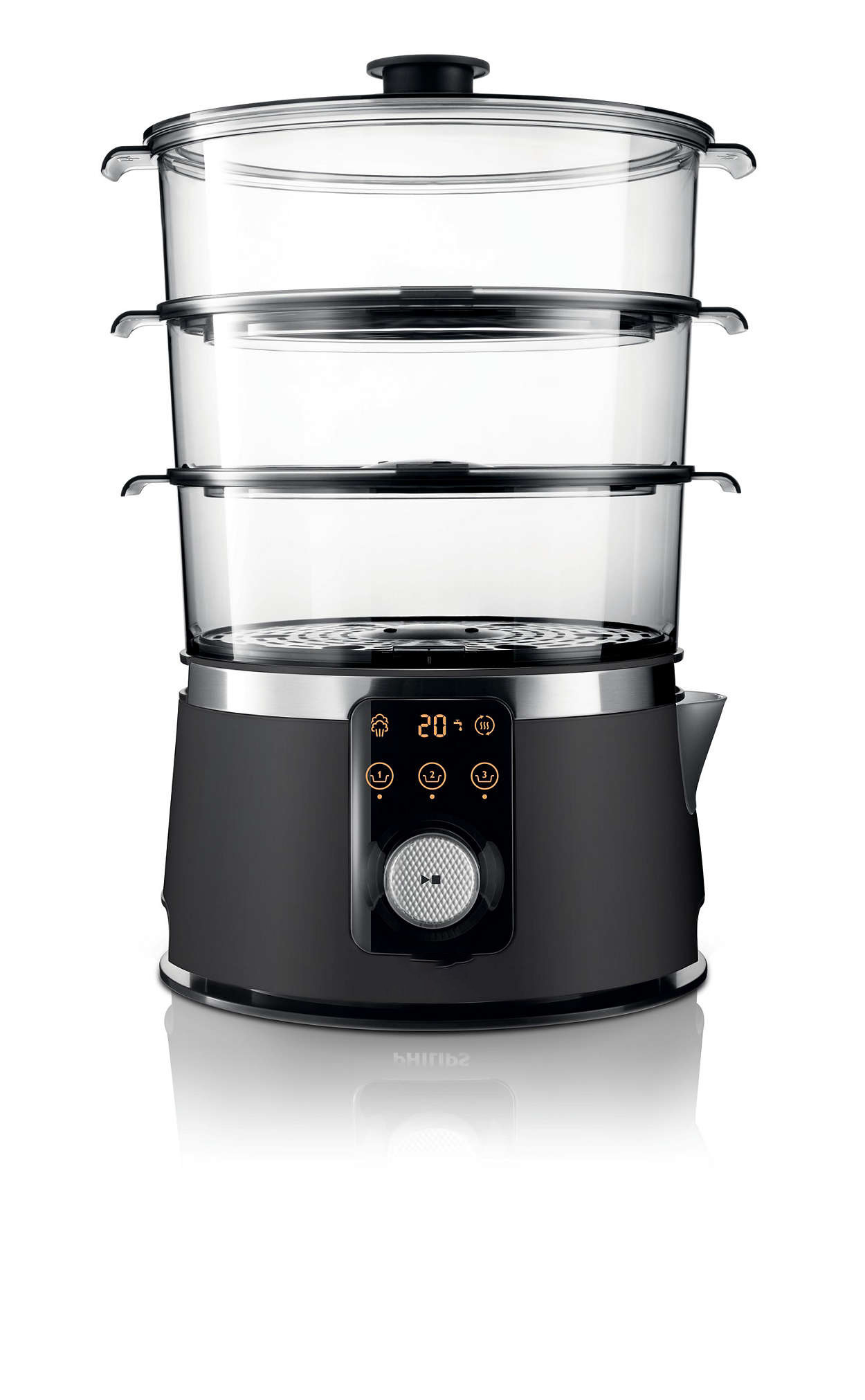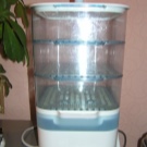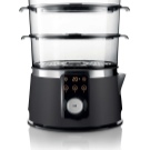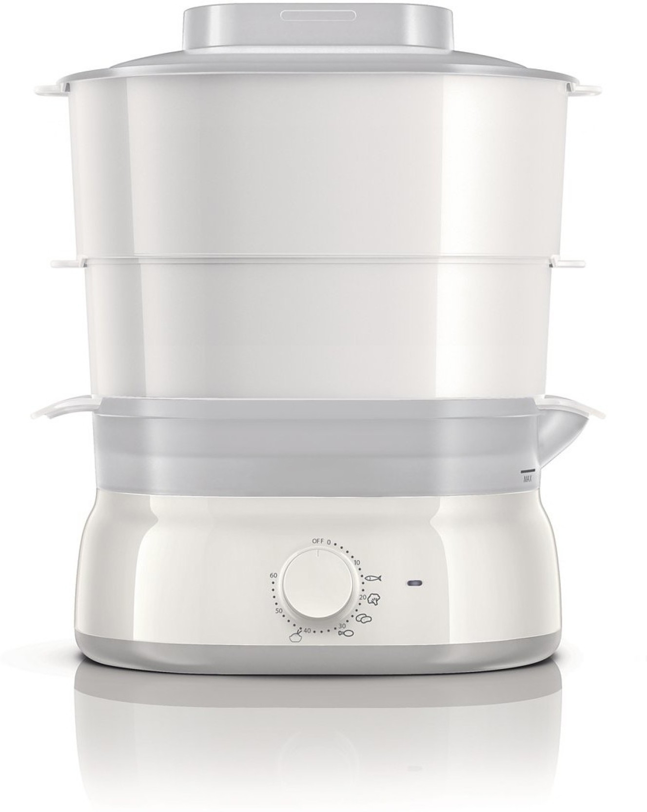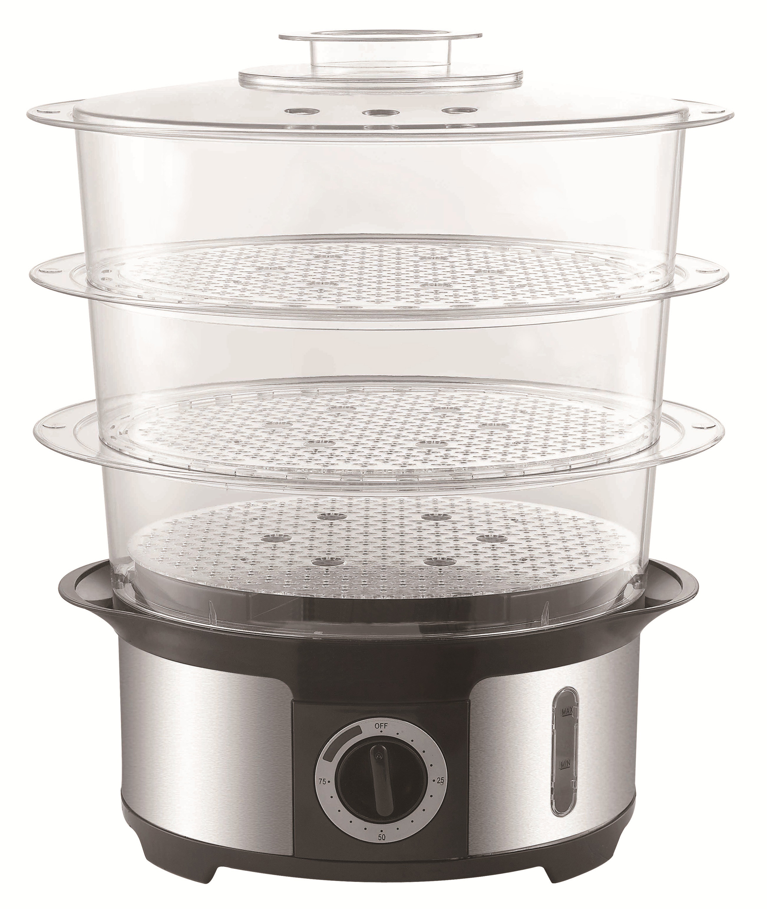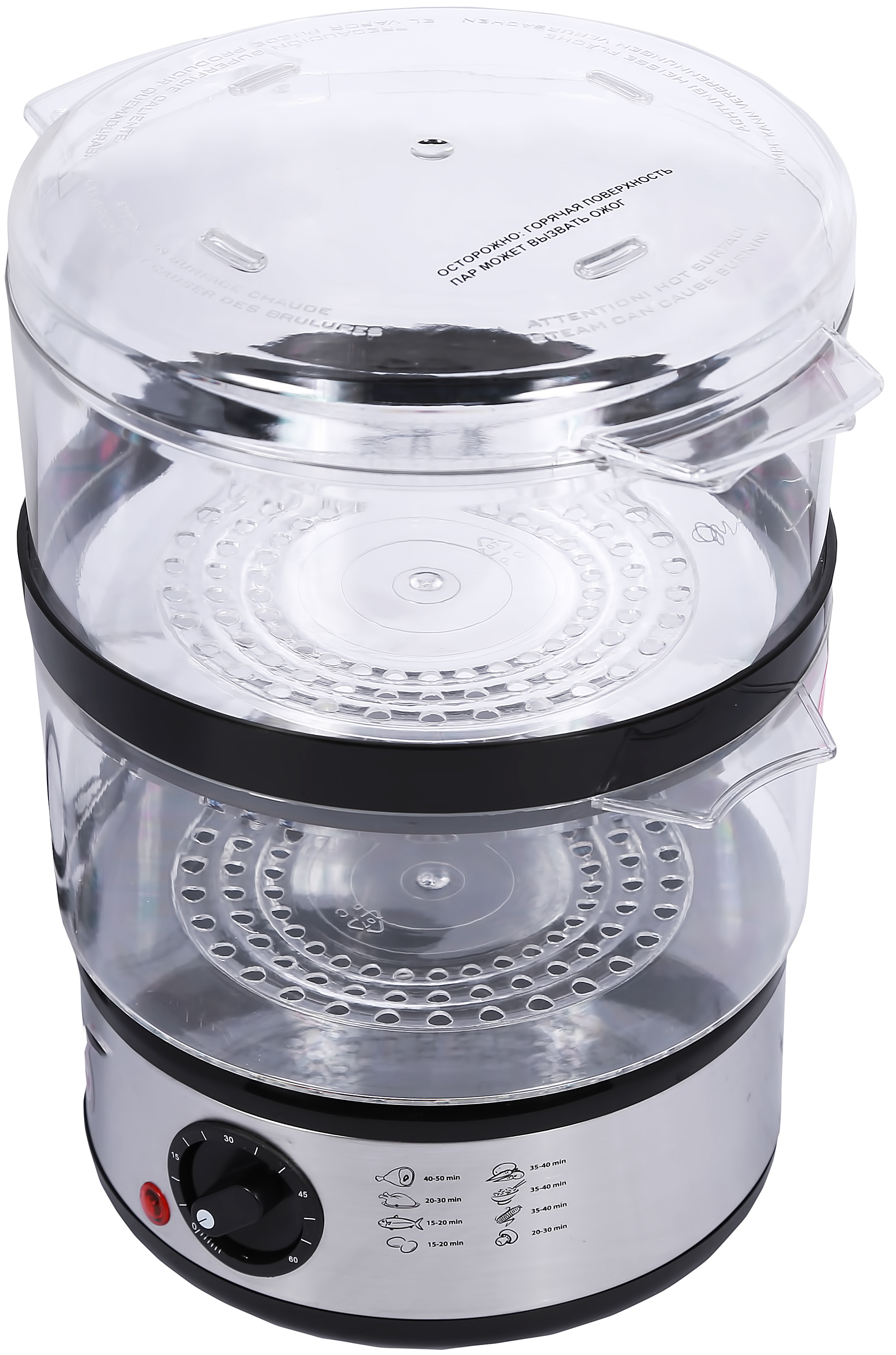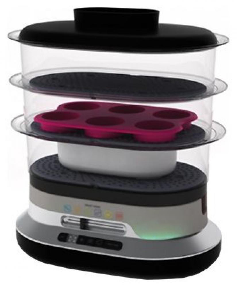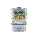The product is quite compact. It is easy and convenient to store. The total volume of baskets is 10.5 liters. Steamer cope with any task perfectly. In the three-tier model, you can cook several dishes that your loved ones prefer. For example, make burgers and vegetables at the same time.