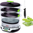 - Steamer Tefal VS 4003 "VitaCuisine Compact"is among the modern models with three tiers. It contains special compartments for cooking eggs, trays for sauce and marinade. The device also has the option" Vitamin + ", which guarantees the rapid flow of steam.