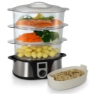 - such devices allow you to cook several types of dishes simultaneously with the help of several tiers;