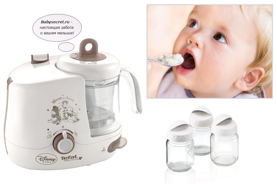 - It is worth noting the combined double boiler blender from the famous producer. Tefal "Baby Home"has a compact size, and also knows how to prepare food for babies. The possibility of cooking baby food is also present in the" Disney "Tefal TD7000 model, which has numerous functions. It is able to grind, stir, defrost food in the built-in blender. Both devices are present recipes for baby food, glass jars under it.