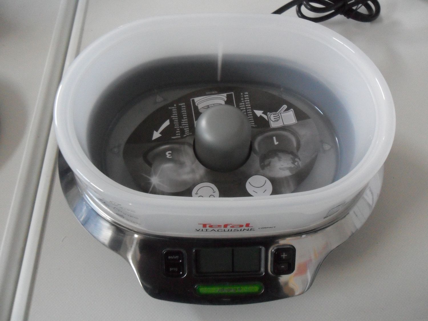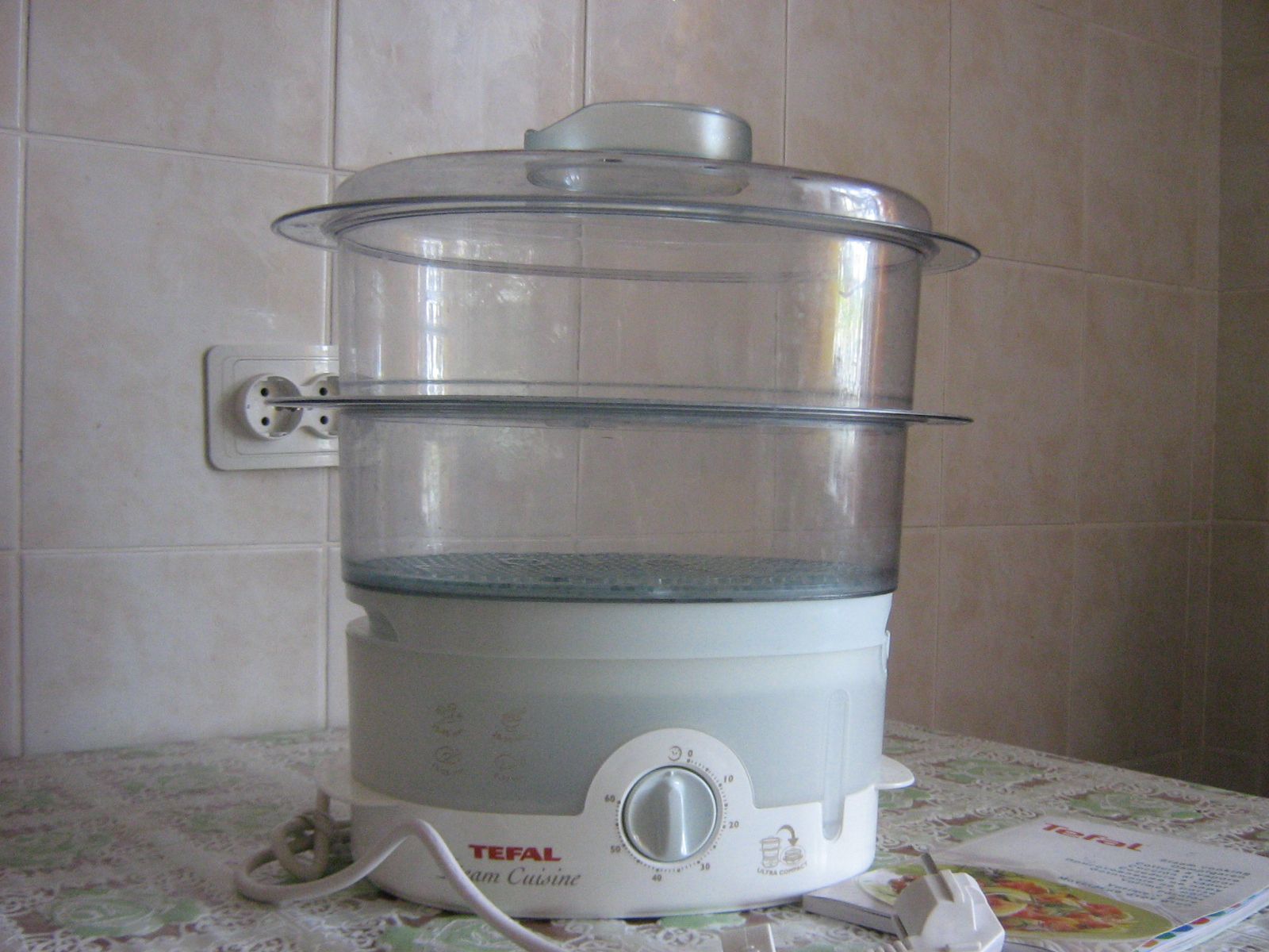 After you have filled in water, it is possible to establish the pallet in which condensate gathers. Here you can put spices for fumigation or different varieties of fragrant herbs. Now you can download the products, set the timer and turn on the double boiler.When the dish is ready, you will hear a beep and the double boiler will turn off automatically. Household appliances from Tefal possesses heat support function for 20 minutes.