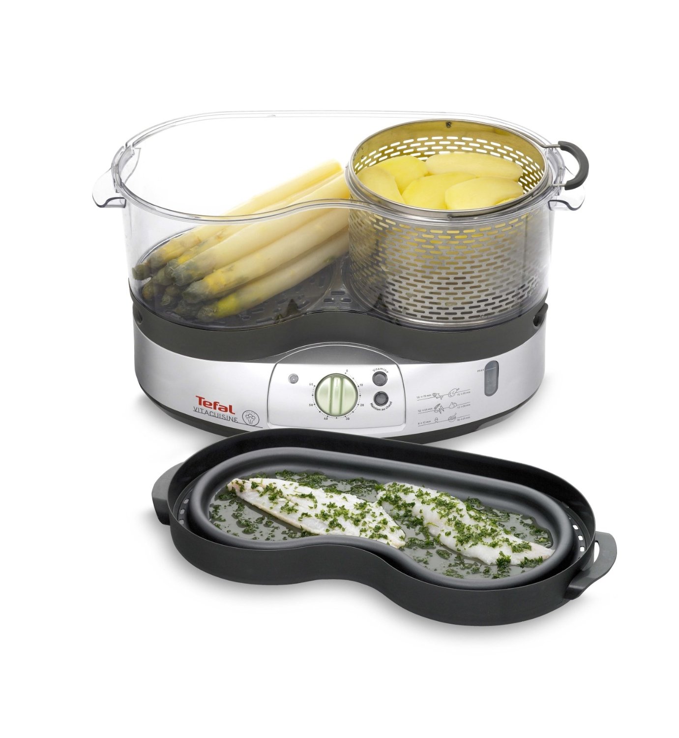 - Tefal VS 7001 "VitaCuisine Gourmand"is known as a combine for healthy eating, which has been able to turn the mind of many people about steamed food. Numerous accessories allow you to cook in the device almost any dish.
