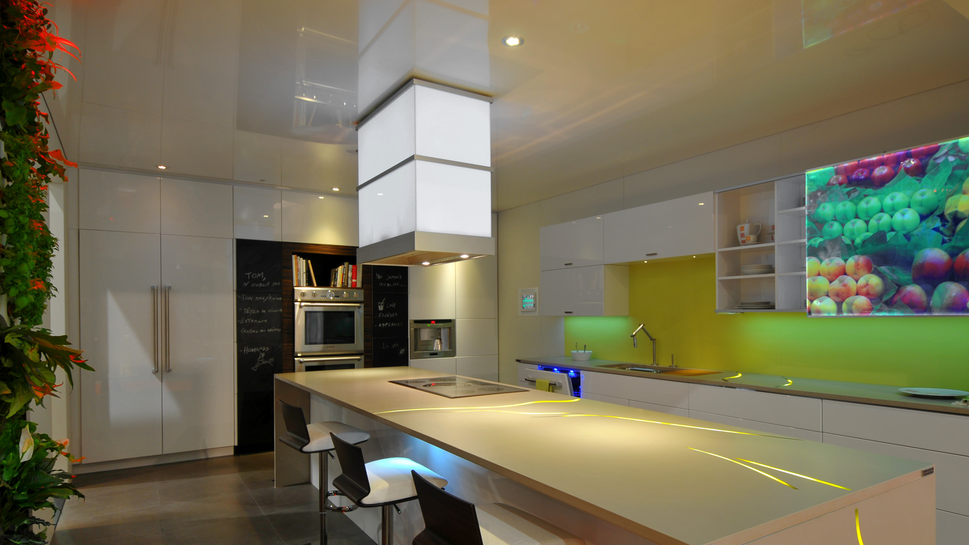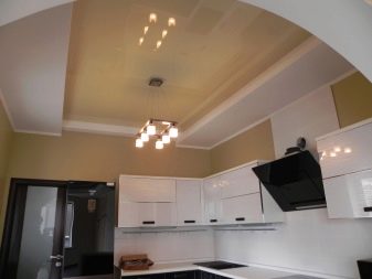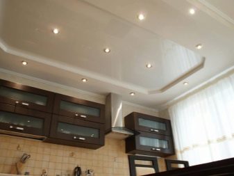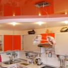 To the ceiling in the kitchen did not resemble a temple or a cathedral with high domes, contact the professionals: designers, electricians, technical specialists. They will properly adjust the desired atmosphere in the room, take into account all your requirements and wishes. It is not enough to order high-quality and effective PVC film. It is important that it is harmoniously combined with the hob, furniture, wallpaper, flooring.