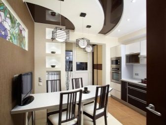 To create a special atmosphere in the kitchen and in the apartment as a whole, refer to multi-level structures with curved surfaces, as well as three-dimensional elements.