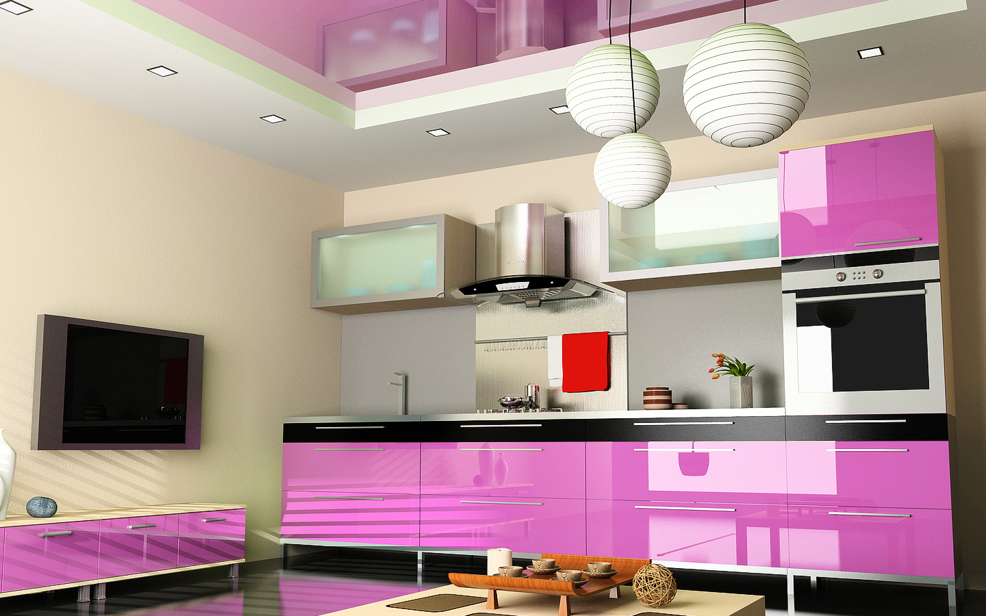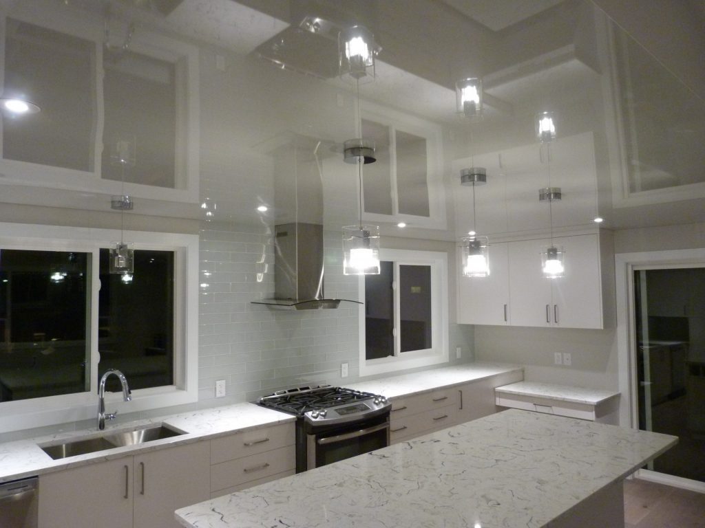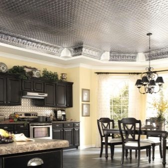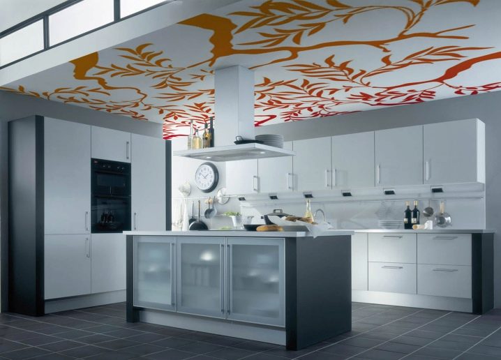 When it comes time to put in order the ceilings in the kitchen, many immediately turn to suspended ceilings. Before you choose the desired model, you must consider the following factors: frequent temperature drops, the formation of fumes and burning, which are reflected on the surfaces. Wear-resistant PVC film is able to provide and maintain a neat appearance of the ceilings, as wallpaper, whitewash, etc. will not do.