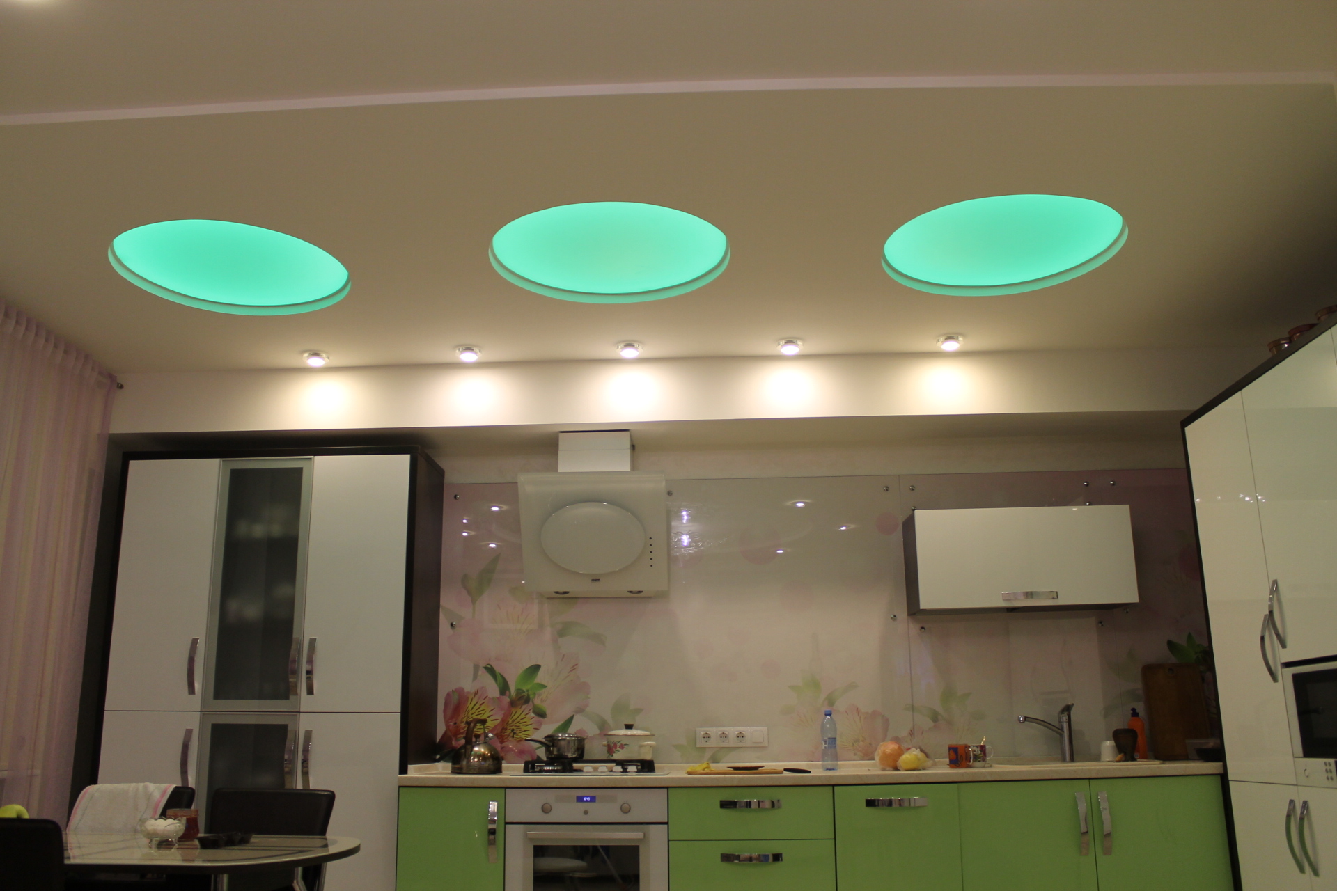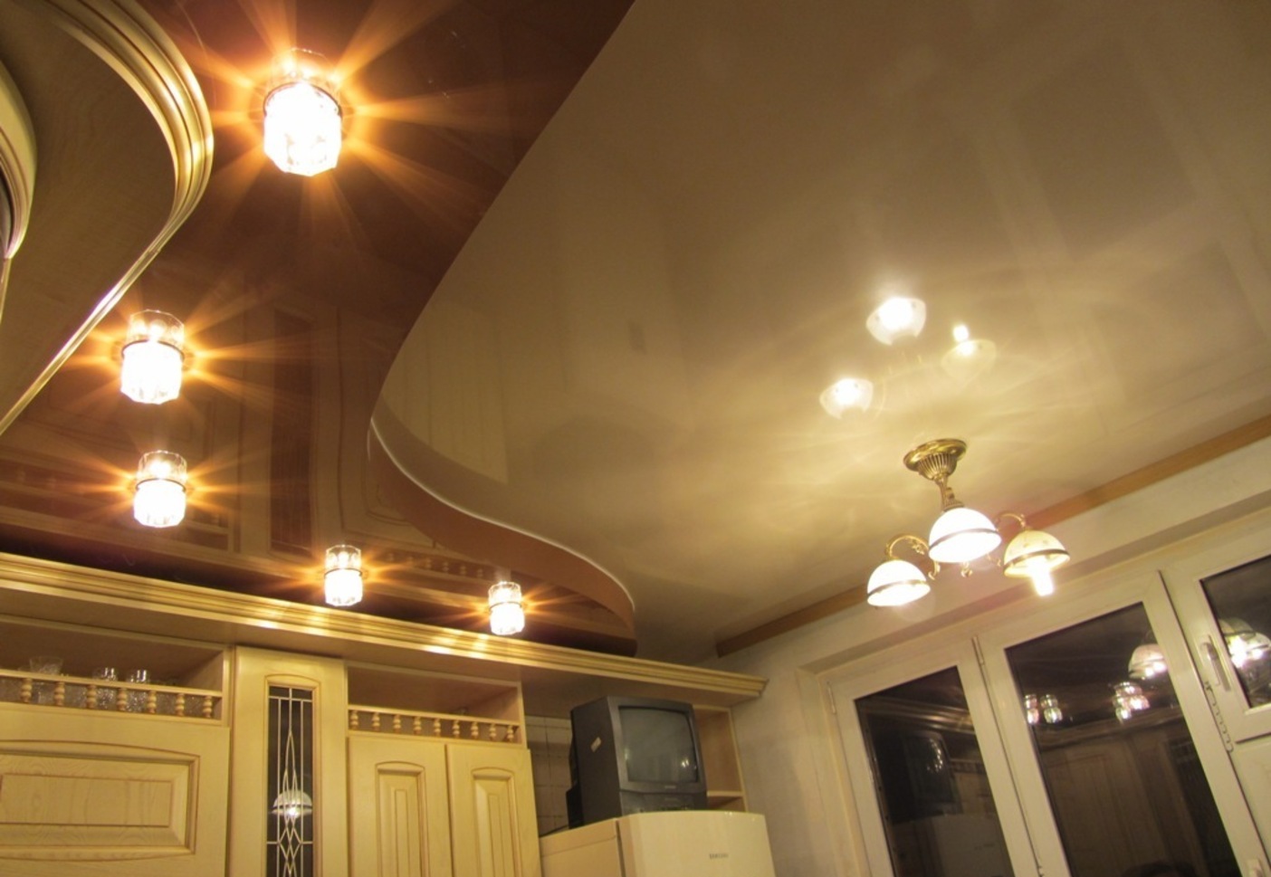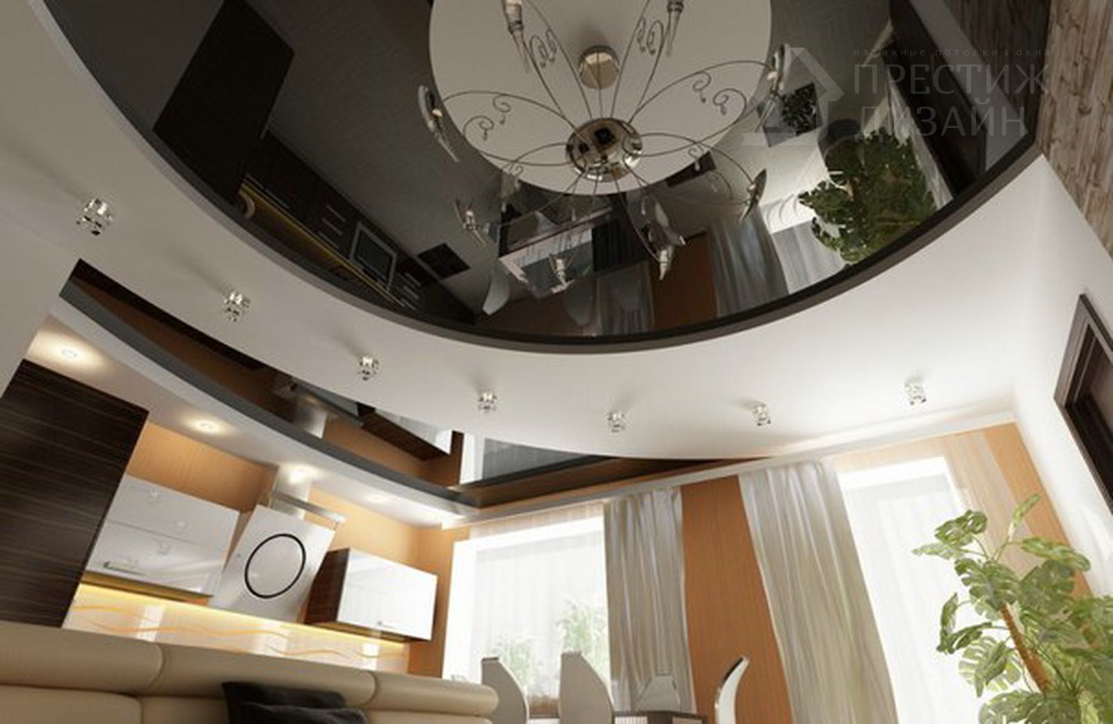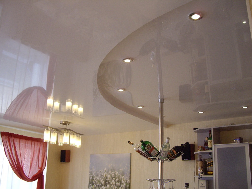 It is durable, perfectly keeps its shape, waterproof. It can be purchased for a small price, add a highlight to the kitchen interior, an attractive appearance. The modern market of building materials and a lot of design ideas offer multi-level models of ceilings with unusual effects.