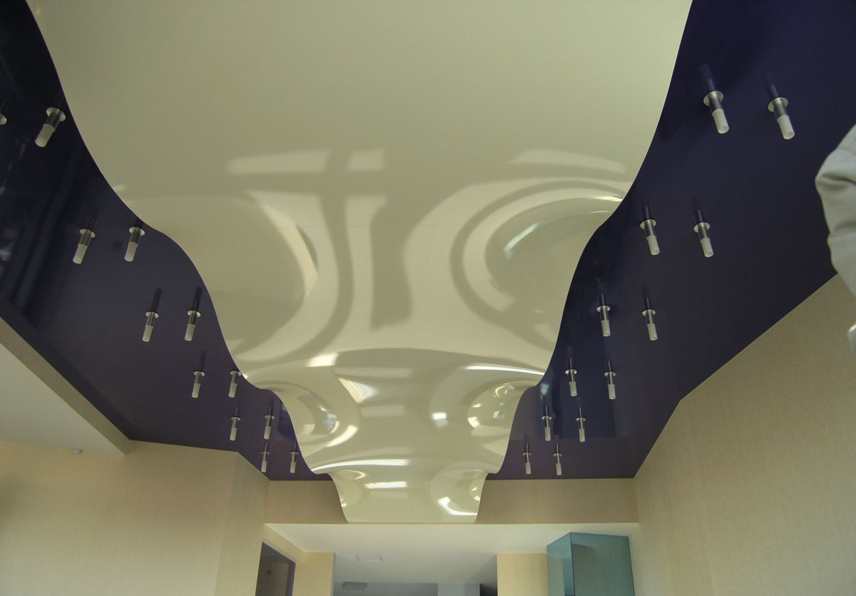 When choosing stretch ceilings for many, the decisive argument is the design. Some prefer monophonic products, others like the options with a picture. Any colorful piece can be successfully combined with monochrome areas. Special charm will bring the right lighting, which can be performed in different keys, on separate levels of the ceiling.