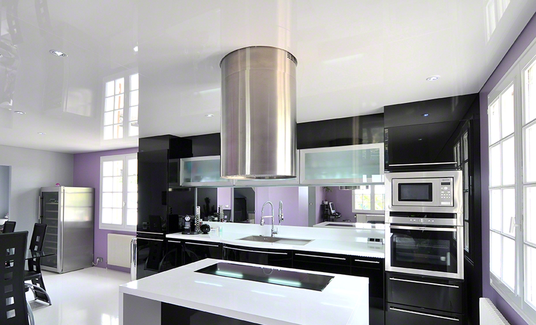 Depending on your preferences, you can choose a stretch ceiling with a glossy or matte texture. At the same time it is worth starting from the characteristics of the kitchen itself. The interesting design of glossy models attracts attention with its appearance, fits perfectly into the styles of art nouveau interior, vintage, retro, glamor chic, classic.