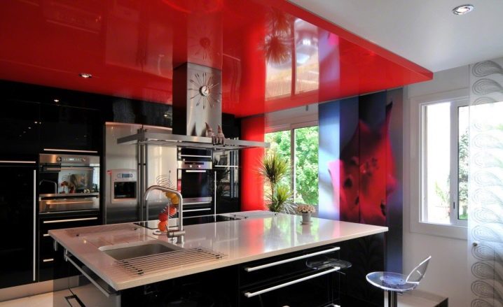 Remember that when installing the frame will require additional centimeters of canvas (up to 5 cm and above). It is worth taking care of the location of the luminaires in order to avoid incorrect transfer of color, reflow of the ceiling in the kitchen. To achieve more light in the room, apply a model with a glossy texture that reflects light. The same rooms, which are penetrated by the sun's rays all the time, will look great with frosted canvases overhead.Fans of loft, hi-tech, modern styles will love the metallized versions in the color of silver and gold.