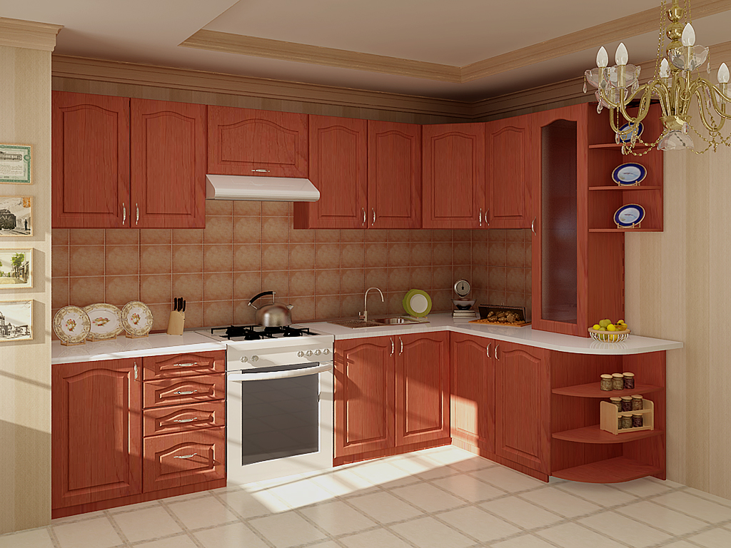 Kitchens from this material are one of the most popular types of kitchens. MDF is quite inexpensive, reliable and durable material. Its advantages also include resistance to temperature and humidity extremes, which increases the service life. Moreover, the manufacturing technology of MDF (namely, those not included in the composition of lignin and formaldehyde) makes it environmentally friendly, which should also be taken into account when choosing a cabinet.