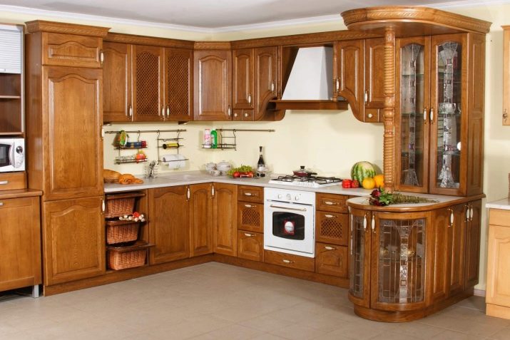 If you are the owner of a small-sized kitchen, but at the same time adherent to ergonomic design, then corner cabinets will help you to optimize the space to the maximum. They are both lower and upper. By activating the corner, you will free up space and visually make the kitchen softer,comfortable and cozy. This wardrobe is quite roomy and allows you to easily arrange a huge amount of kitchen utensils.