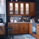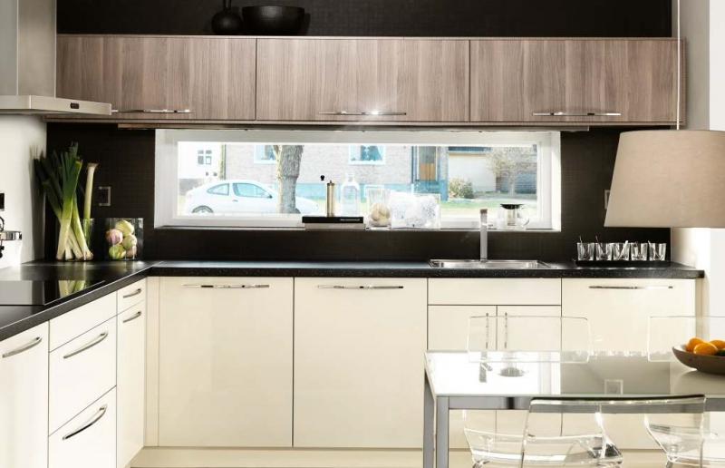 You can also choose cast wooden doors or with glass inserts. The second option will make your kitchen more light and airy, but do not forget about the permanent order in the cabinets, because their contents are clearly visible behind the transparent glass.