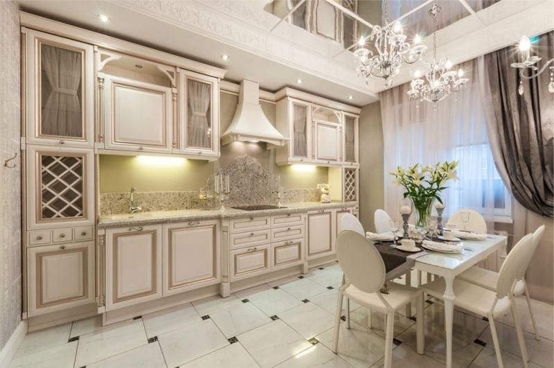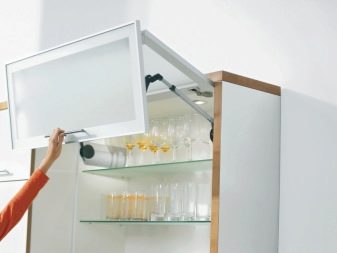 Glass doors are preferably hung on the top row cabinet. Glass, as a more fragile material, requires a special approach to the installation of hinges. The hardware contains a certain list of required elements: