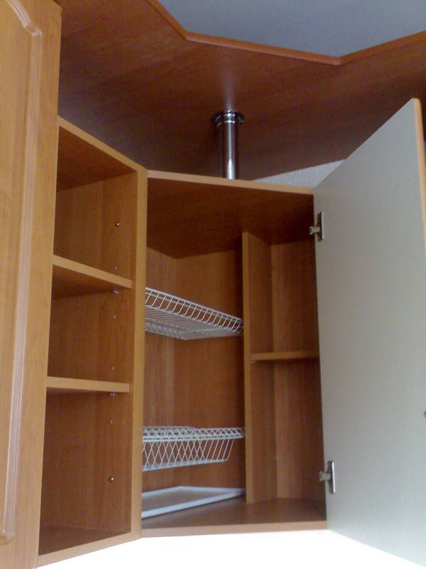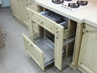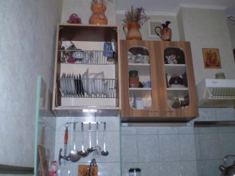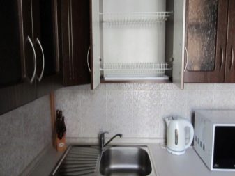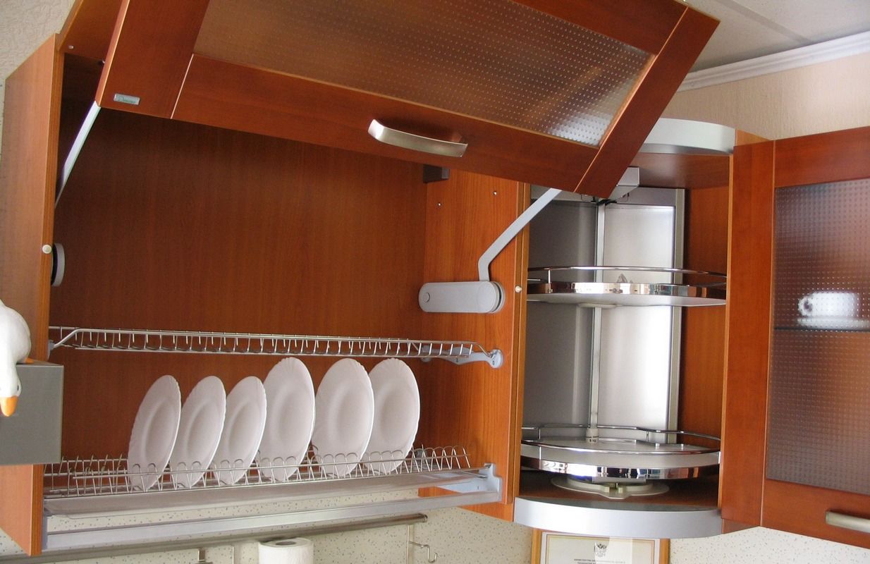 Particular attention should be paid to the location of the drying. If you want to save the maximum amount of space in the room, installation of the system can be done in the corner area. Modern manufacturers are increasingly offering customers various sliding furniture options,who settle in this part of the room. This solution allows you to use each centimeter of the kitchen strictly for its intended purpose.