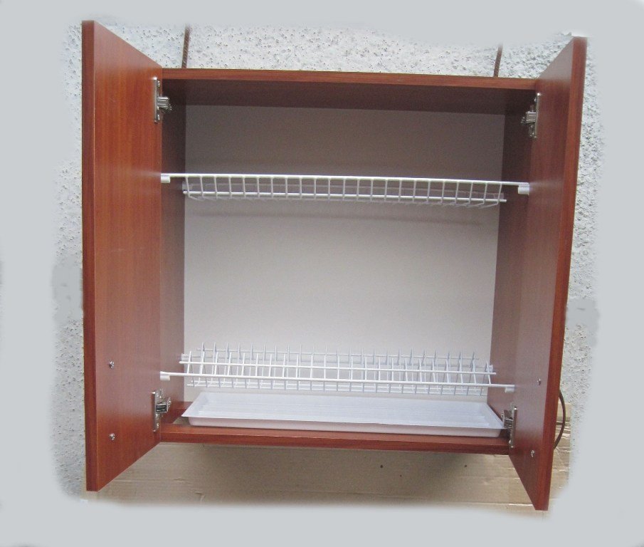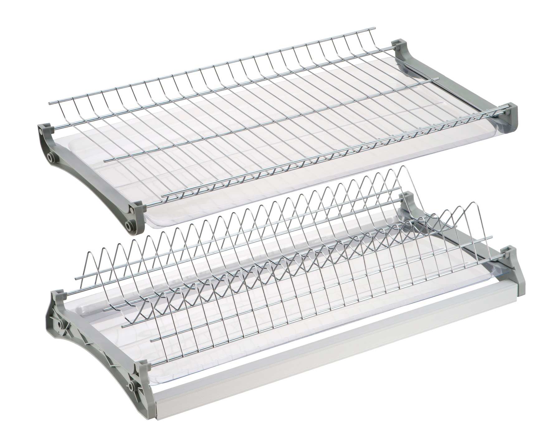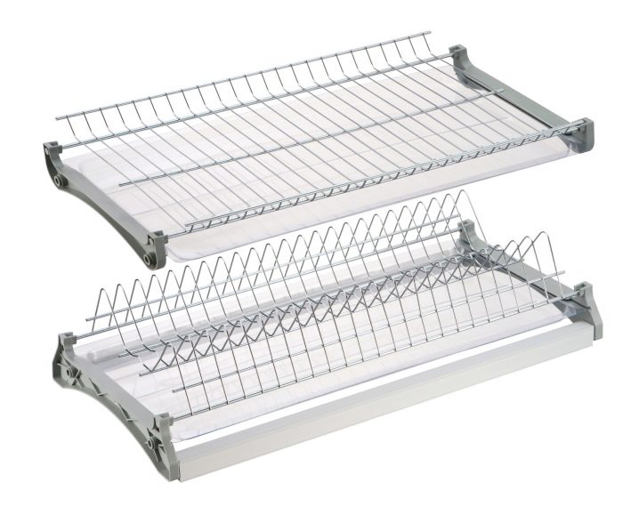 If the furniture is spacious, you can look at 80 cm systems. For small cabinets, 40 cm variants are suitable. When measuring, consider the fact that the minimum distance between dishes placed in the dryer should be at least 300 mm. Pay attention to the fact that the tier for storing cups is always on top, as this protects other objects from regular ingress of water.