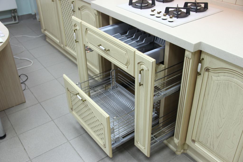 The latest functional innovations include retractable systems. Their advantage is easy to use. Systems are mounted inside the cabinet, which saves space.