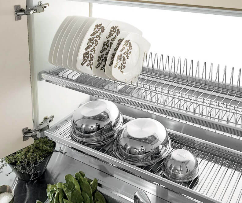 The advantage of retractable dryers lies in maximum functionality. You do not have to constantly look for dishes, as when using the system, everything you need will be visible.