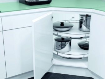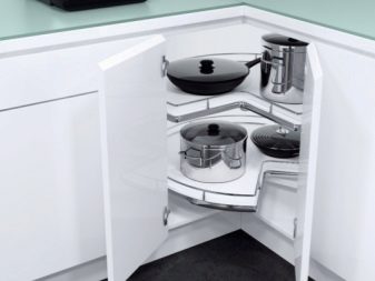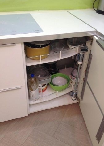 It is possible to place the carousel in the corner cupboard on any side of the kitchen unit: in the right cabinet or in the left, on the top shelf or on the bottom. It all depends on the wishes of the owners.