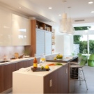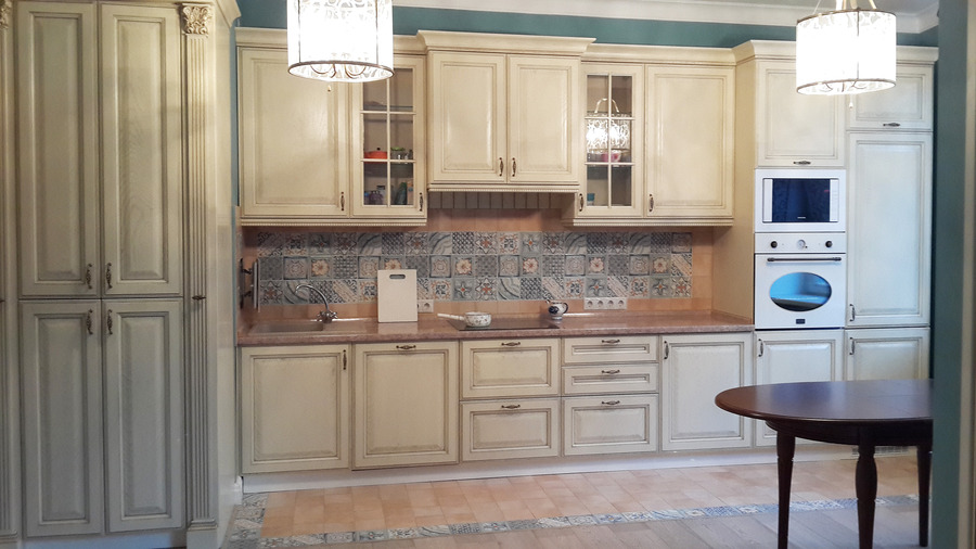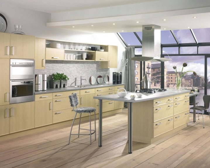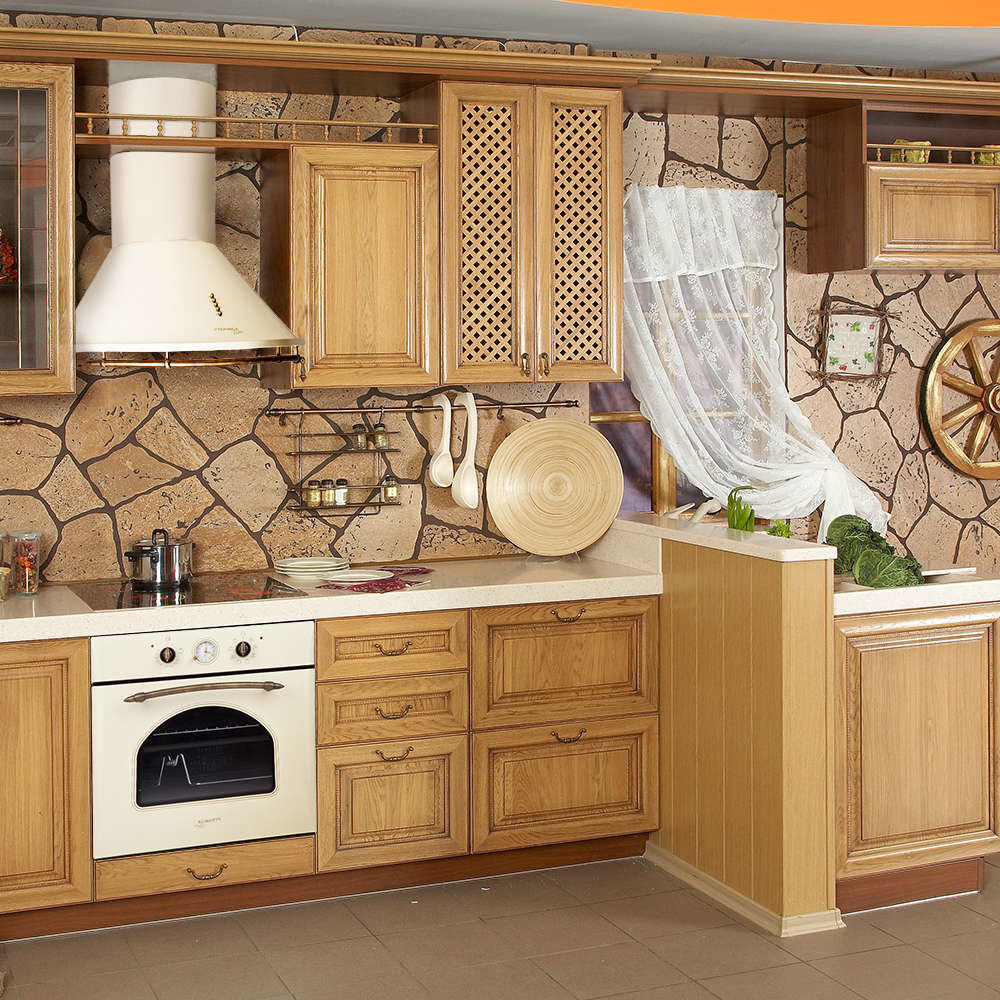As for the panels and casement hinged cabinets, they are made of pine, acacia, alder, oak and beech.Natural wood is characterized by a beautiful appearance, but often swells from moisture and begins to rot from dampness. Therefore, cabinets with this type of finish should not be installed in places where comfort and high humidity work. Recently, facades made of artificial materials have been used as an alternative to wood, they are much stronger and, thanks to their unique structure, fit harmoniously into any kitchen interior.