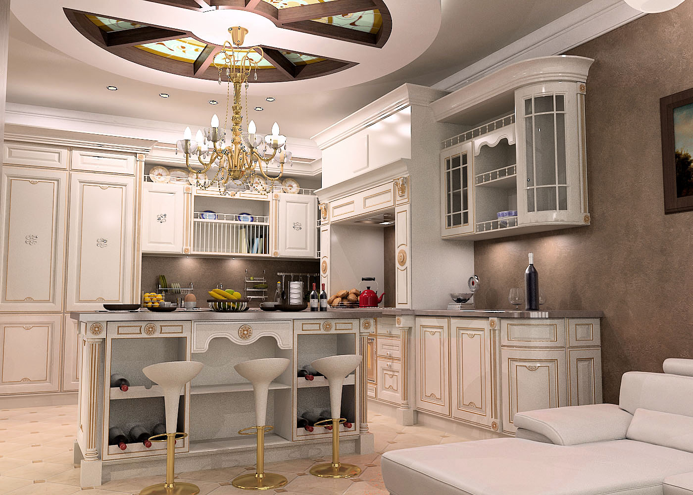 To give the kitchen an unusual look and fill it with comfort, use cabinets of various shades. Beautifully look composition in beige, white and gray. When choosing a classic style that provides for minimalism, well-fitted white cabinets with open shelves.