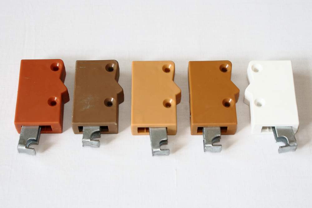 The suspension is P-shaped (right and left). It is attached simultaneously to the side and top wall of the cabinet, thereby performing the additional function of the screed. Its large hole does not require precise marking for a screw on the wall, but its drawbacks are the same as for a simple suspension. Modern fastenings for wall cabinets are a plastic or metal box with several openings.