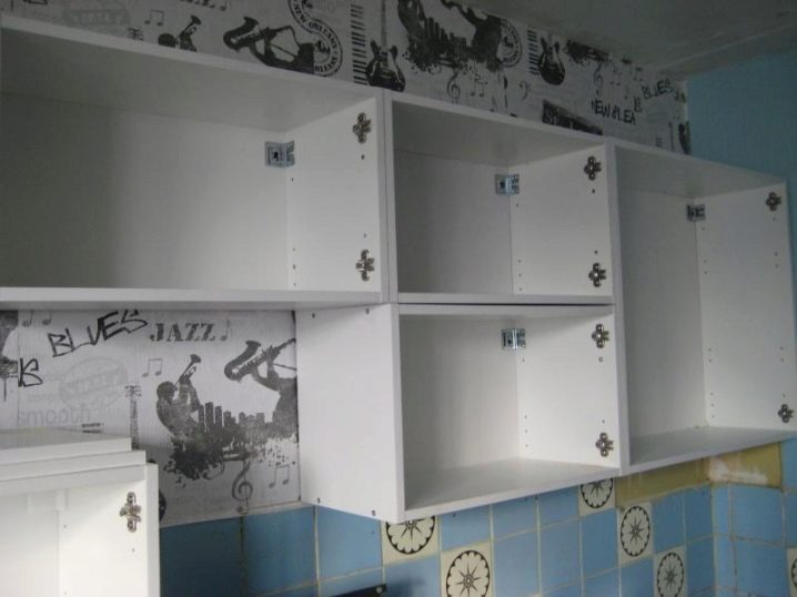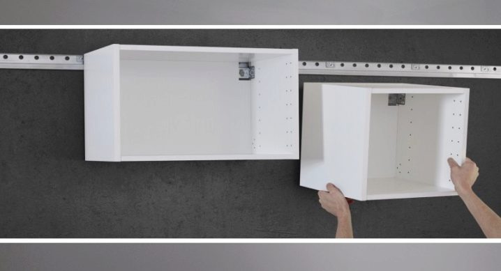In Soviet times, cabinets were hung in the kitchen with hooks. They simply hung on the nails or screws that were sticking out of the wall. This design was not reliable, and often hanging cabinet fell with all the kitchen utensils. In addition, with the help of this design it was very difficult to align the series of cabinets in a single line, we get steps that spoil the whole look of the kitchen.