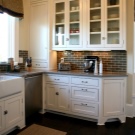 - If an apron is formed from several rows of ceramic tiles, then it is desirable to form them in a level so that the upper cabinets are located exactly along this line. In this case, you do not have to hang them on top of this product in order to align the horizontal plane.