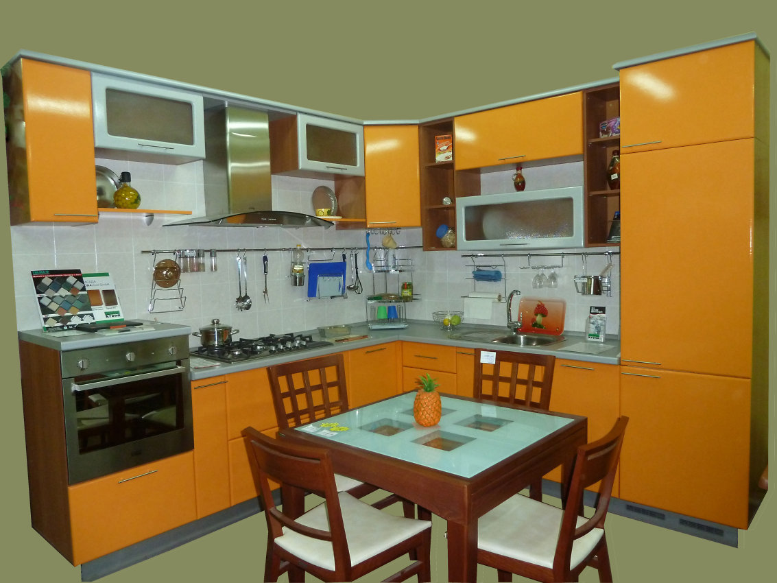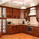 The best option for the price and quality will be the manufacture of cases and shelves of kitchen cabinets made of laminated chipboard, and facades of MDF, which makes it possible to increase the decorative and durability of products.