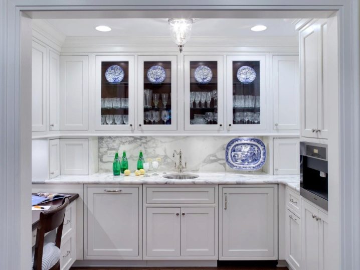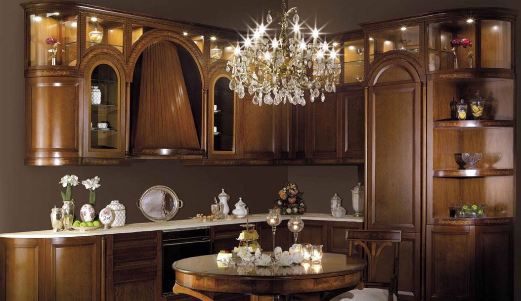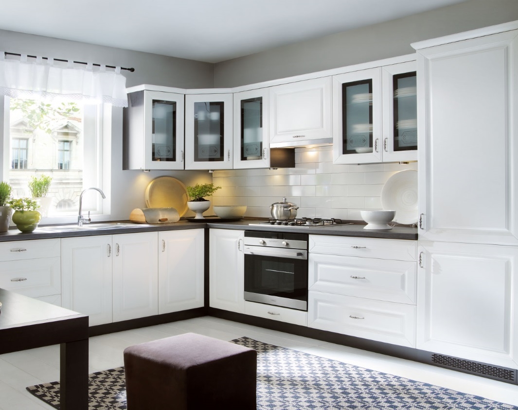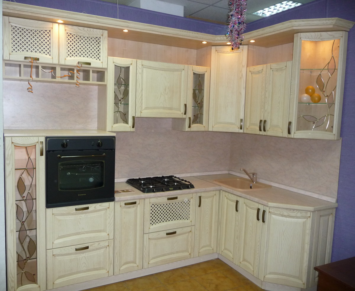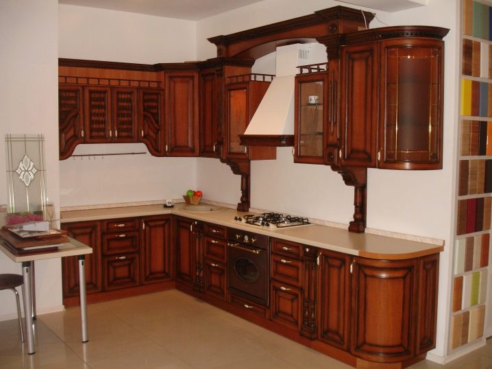 When purchasing or ordering kitchen cabinets of various configurations, it is necessary to understand that carving and other spectacular decorative elements on the doors will require regular cleaning from dust and grease.