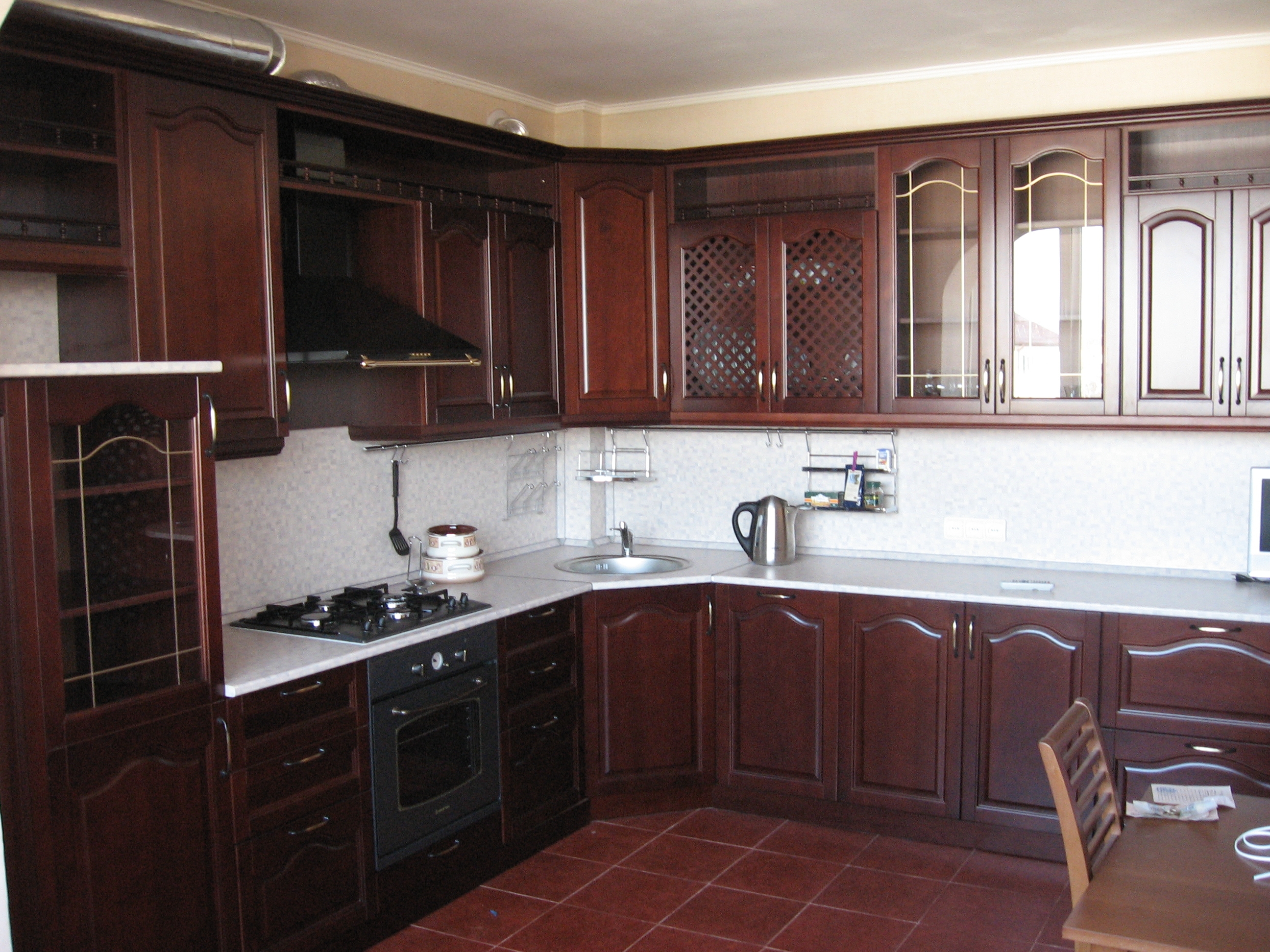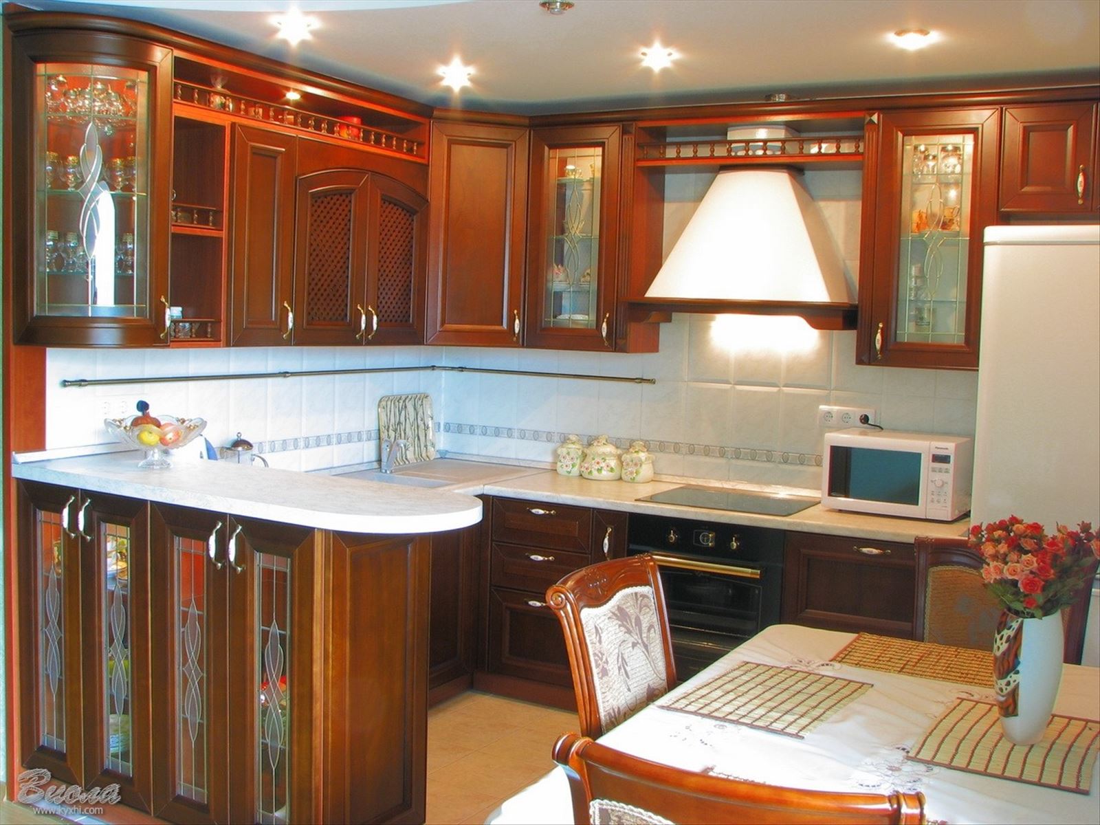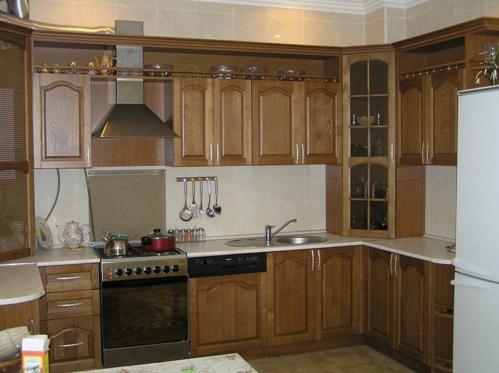 When purchasing or ordering kitchen cabinets of various configurations, it is necessary to understand that carving and other spectacular decorative elements on the doors will require regular cleaning from dust and grease.
