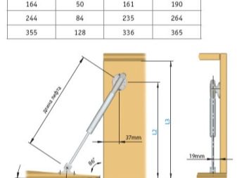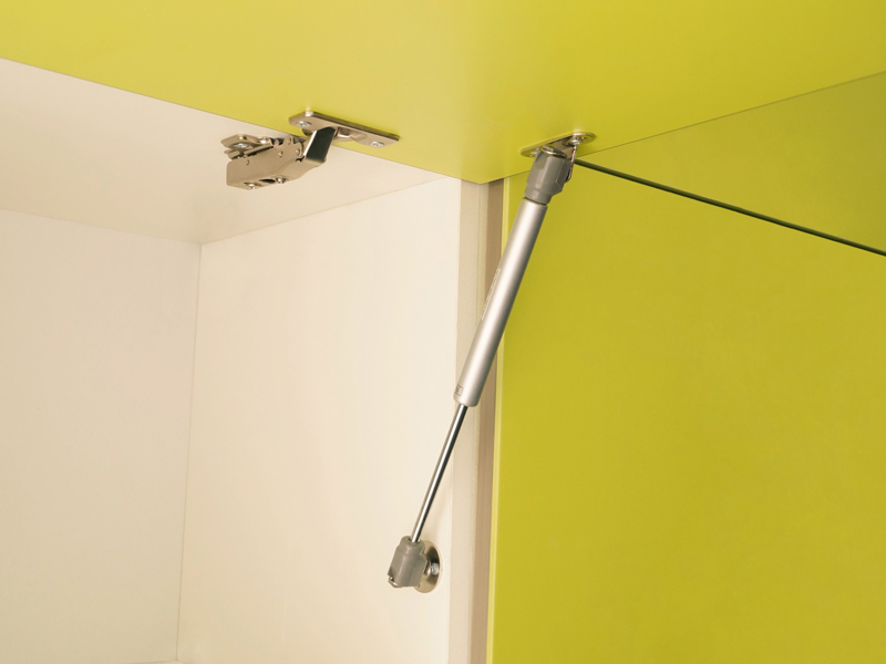 Selection of gas lift for the kitchen cabinet is determined by two important indicators: the device parameters and the force of compression of the spring. First of all, it is necessary to install the device, according to the dimensions corresponding to the size of the cabinet. To do this, it is necessary to measure the height of the door and the depth of the cabinet and, according to the values obtained, select a standard gas lift. Usually you have to choose from three standard sizes: these are 164, 244 and 355 in the extended state. In addition, it is imperative to check the following dimensions of gas lift: the length in the folded state with and without fasteners, as well as the maximum length of the stem extension.