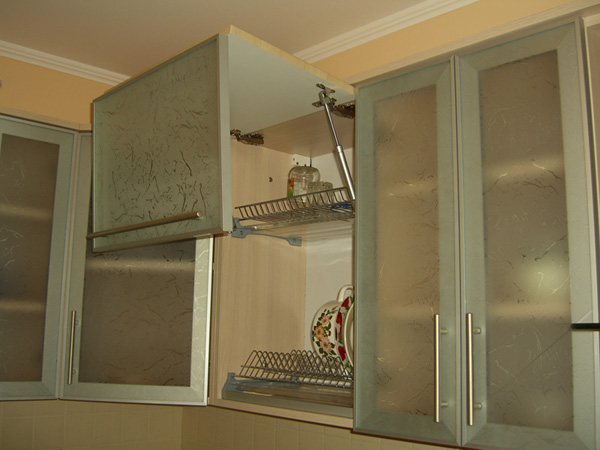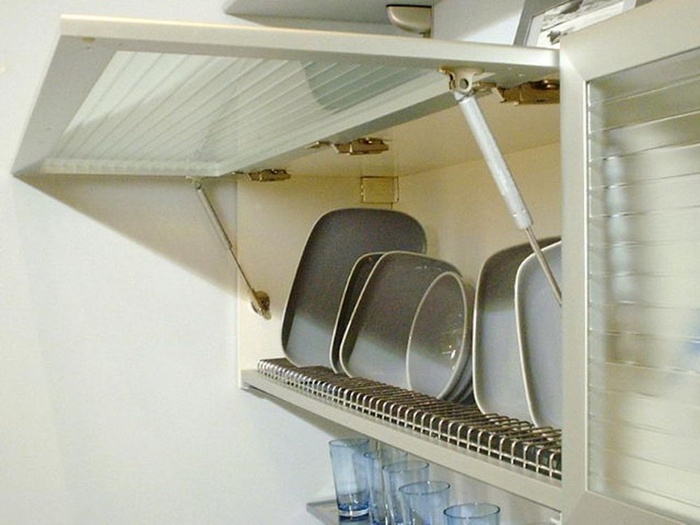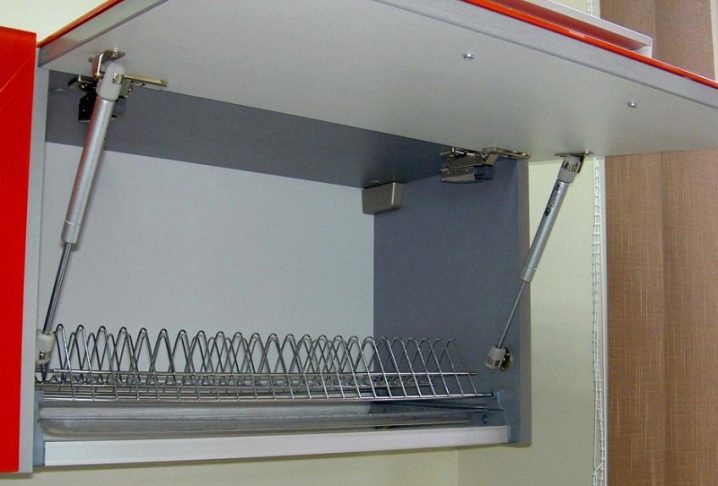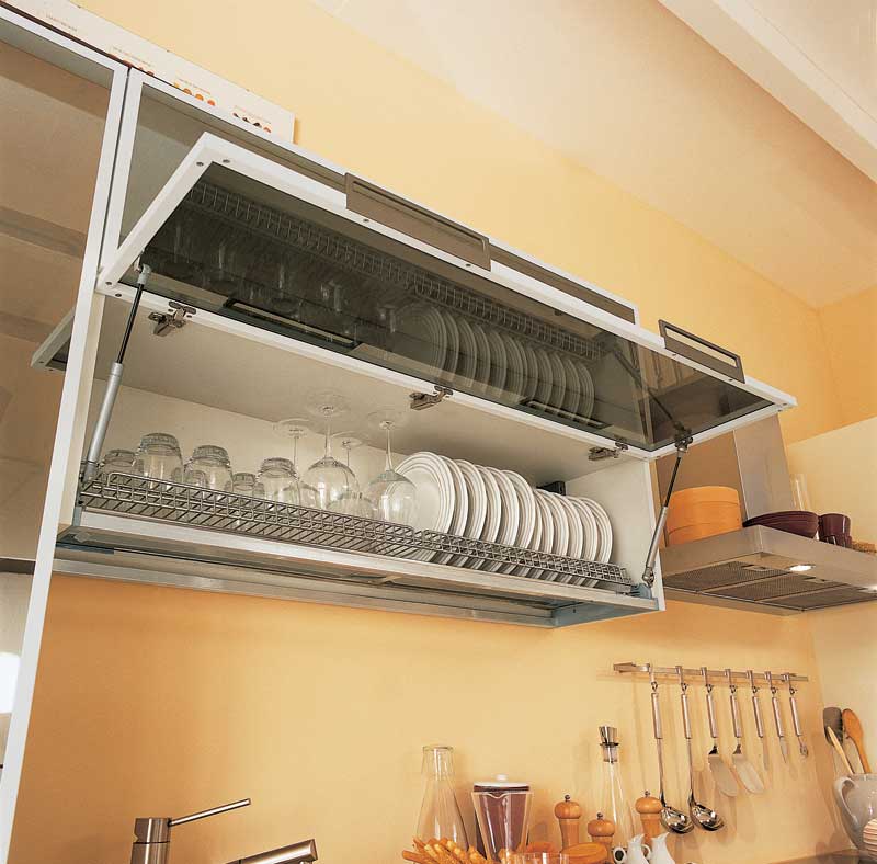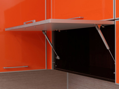 Kitchen gas lift is a shock-absorbing mechanism for doors of horizontal opening. The mechanism "gas lift" refers to a large group of brackets. It has the appearance of a lifting mechanism, the main purpose of which lies in opening and holding doors. Due to this, the doors open and close without any extra effort. In addition, opening the door completely, the door provides the ability to fully see the contents of the cabinet.