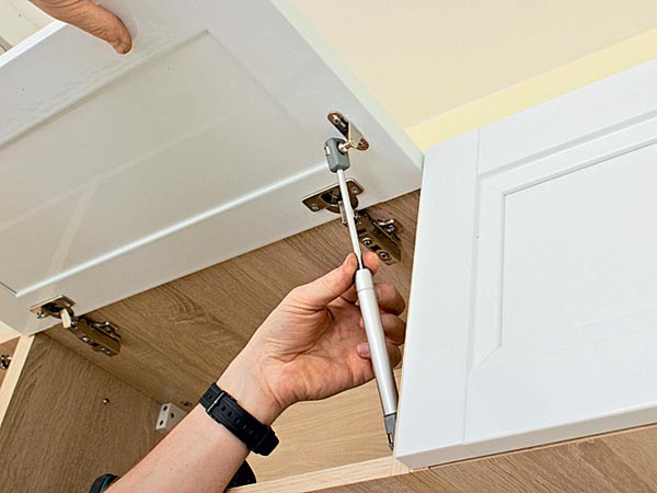 In order to install gas lift on the kitchen cabinet, you need to equip a whole set of tools.