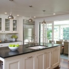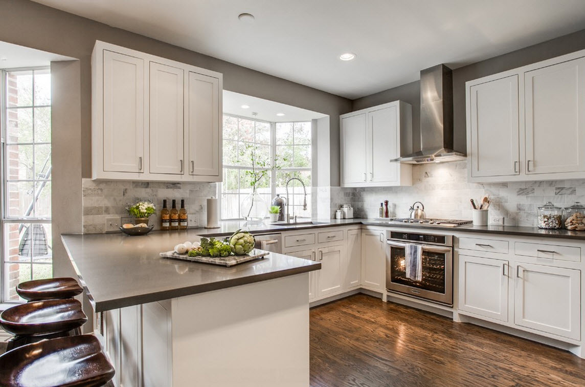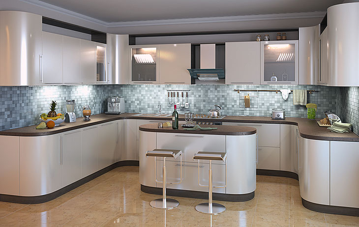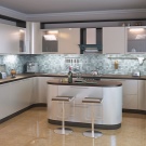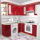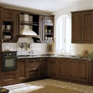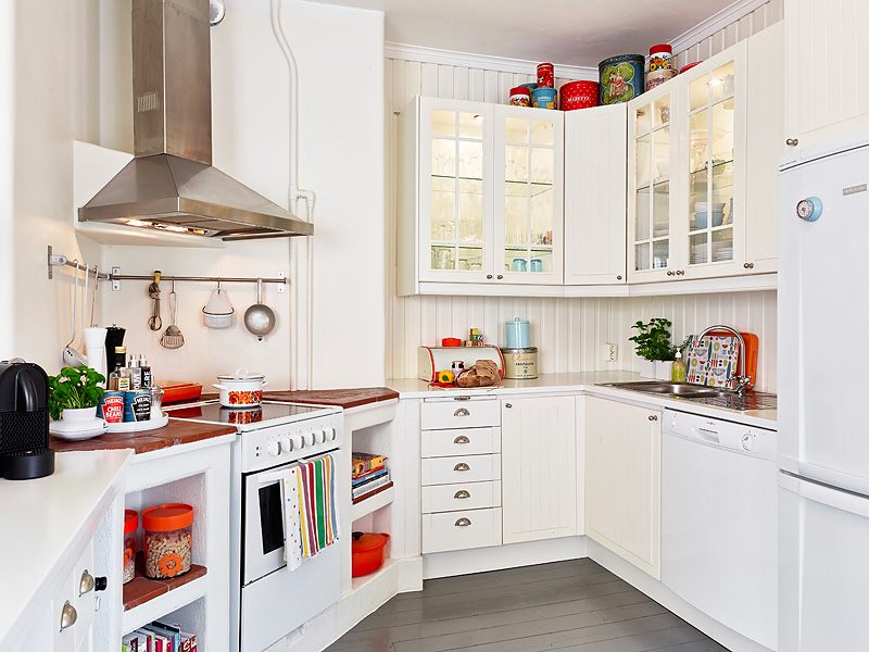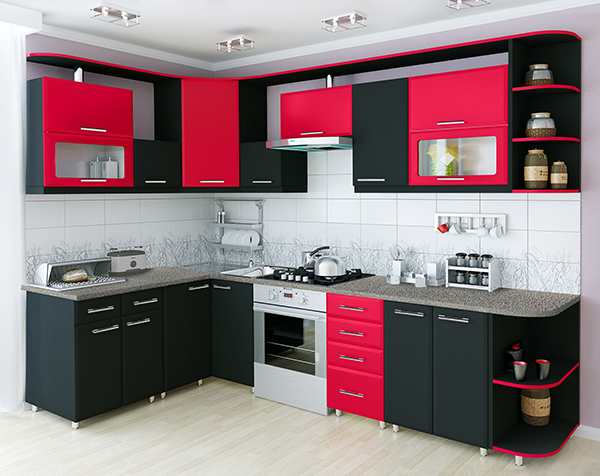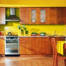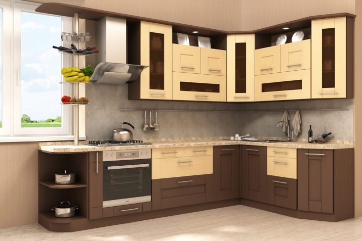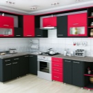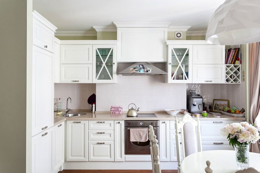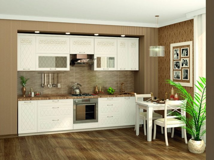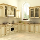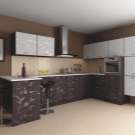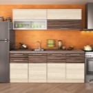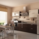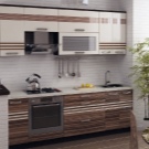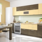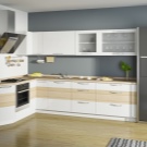 But at the same time, this furniture visually eats space. To smooth out this effect, you need to choose the optimal combination of colors and finishing materials.For example, use light and monochromatic ceramic tiles for facing the walls of a room or apron. Reflecting the lighting, this finishing material will make the kitchen more spacious.