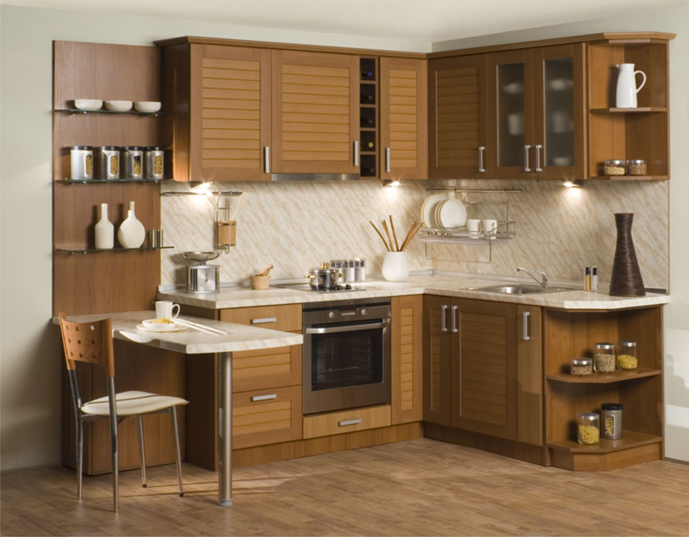 Thus, the upper cabinets are very comfortable, and sometimes indispensable for the interior of small kitchens furniture. In addition, to hang the closet yourself, you need no special training.