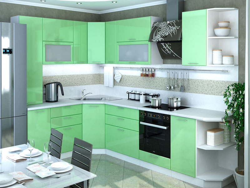 Hinged kitchen cabinets can hide some errors: wall irregularities, disguise pipes and other communications. On the surface of the upper cabinets, any traces of dirt on the facades, such as fingerprints or grease, will be very noticeable. This will be especially noticeable on acrylic or any other glossy surface.